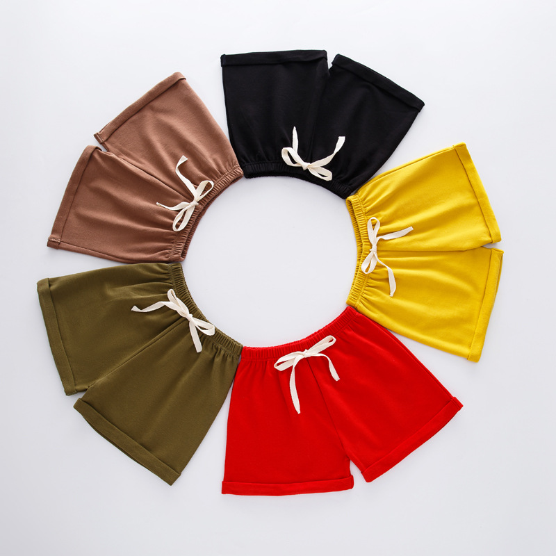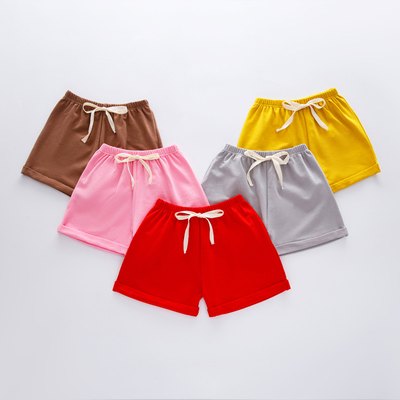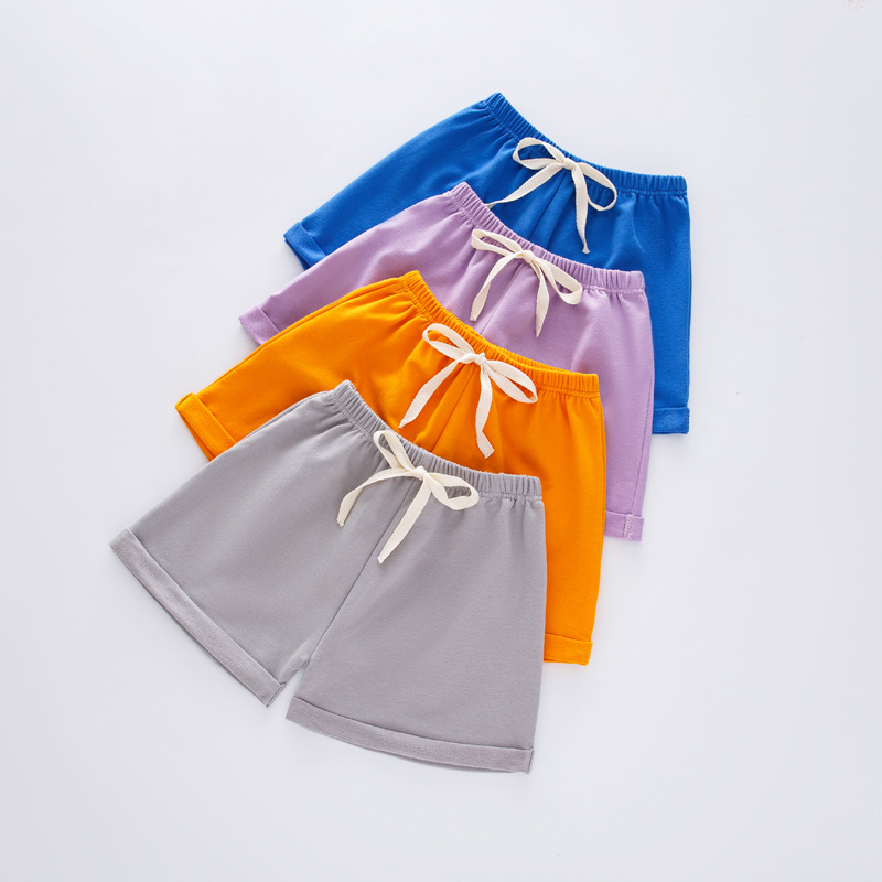 여름 어린이 캔디 컬러 컬링 캐주얼 반바지 홈 파자마 바지 소년 소녀 단색면 3 점 비치 핫팬츠스토어 가기