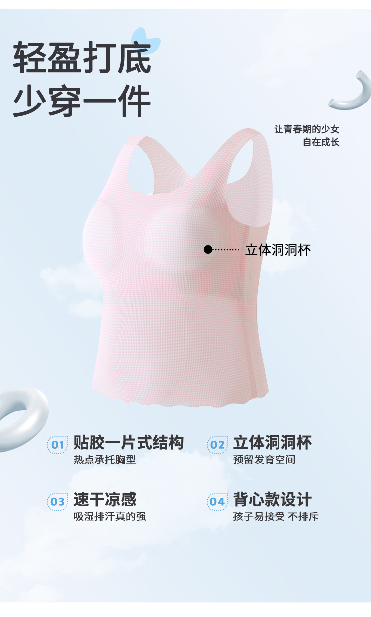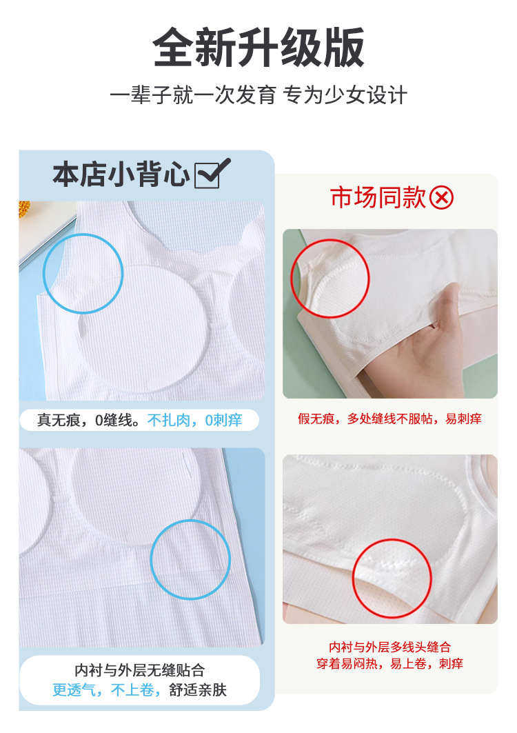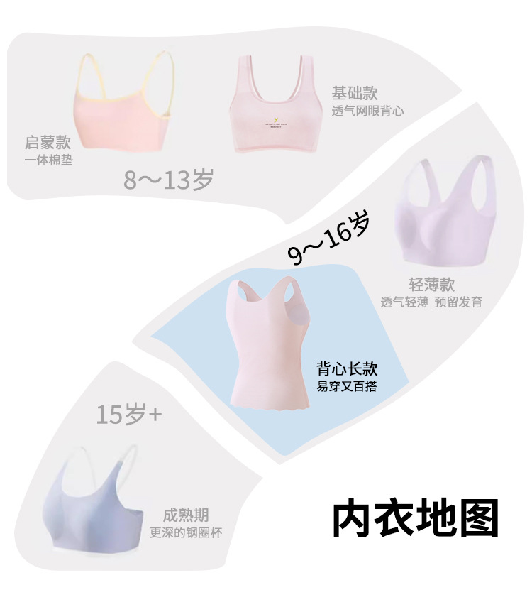 어린이 매끈한 긴 조끼 여학생 개발 조끼 얇은 속옷 중학교 및 고등학생을위한 반 범프스토어 가기