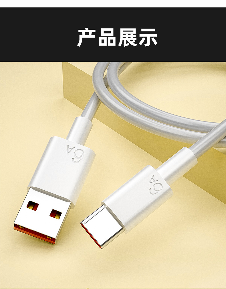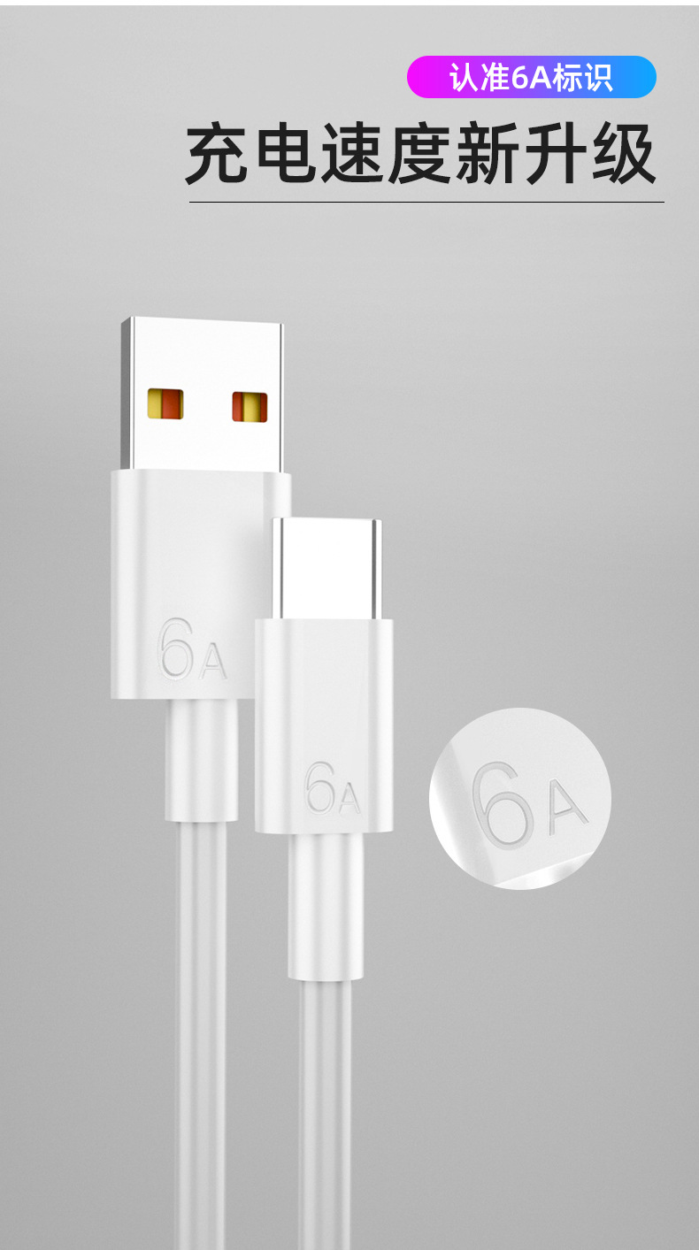 Type-c 단일 헤드 데이터 라인 6A 플래시 충전 라인 typec은 화웨이 휴대 전화 충전 라인 빠른 충전 도매에 적합합니다.스토어 가기