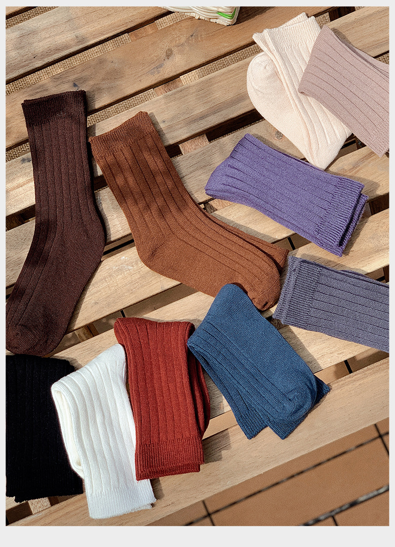 어린이 양말 봄과 가을 새로운 한국 스타일 단색 소년 소녀 중간 종아리 양말 중대형 아동면 양말 학생 양말 도매스토어 가기