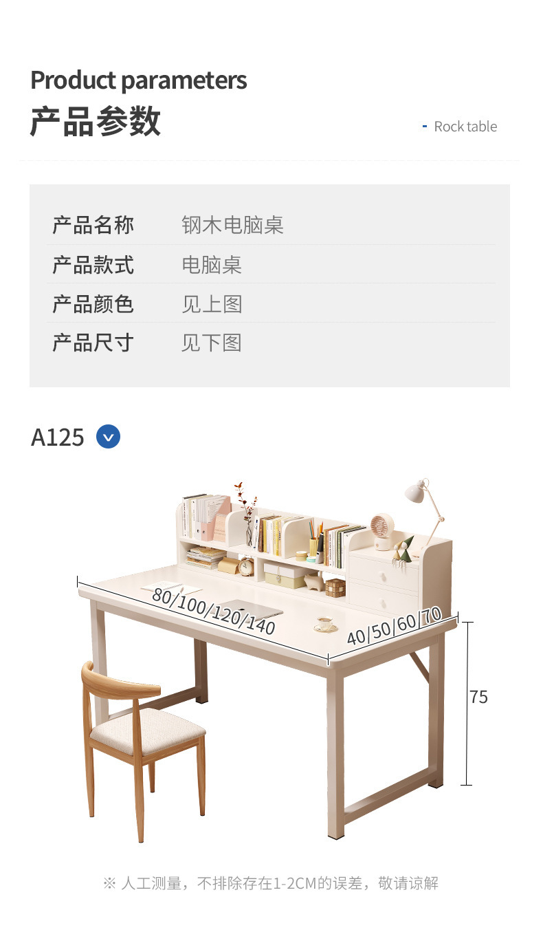 • [테이블과 의자 조합] 강화 브레이스 스틸 프레임 120x60 브러시 화이트 오크 색상