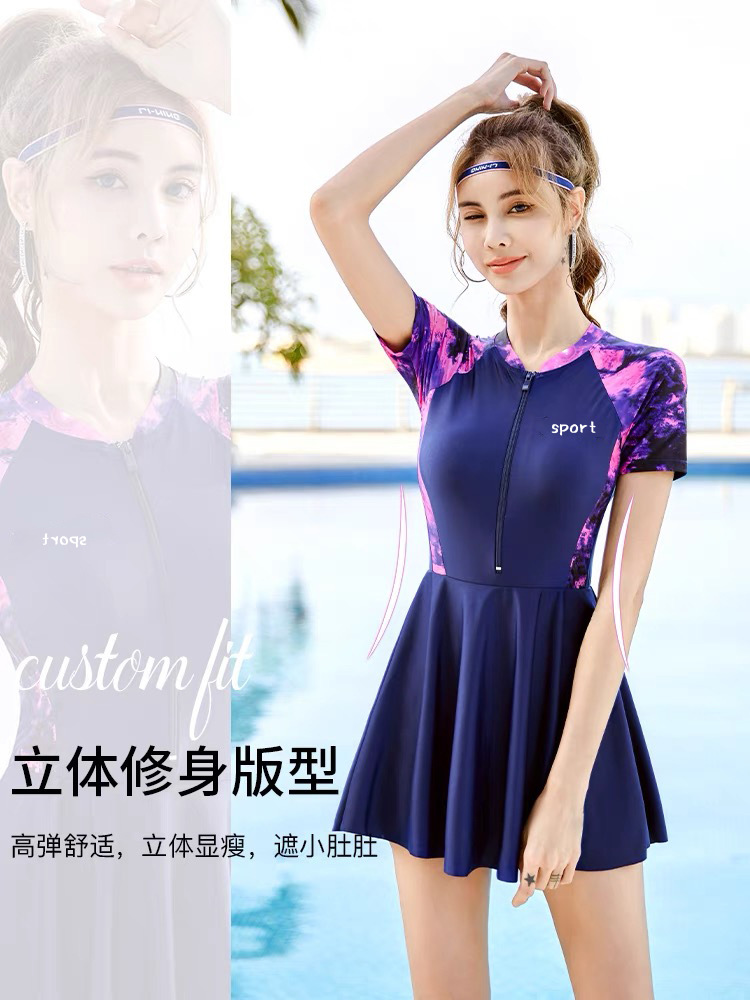 새로운 수영복 여성 플러스 사이즈 슬리밍 배꼽 커버 하이 허리 스커트 원피스 고기 커버 여성 수영복스토어 가기