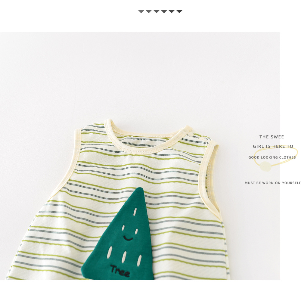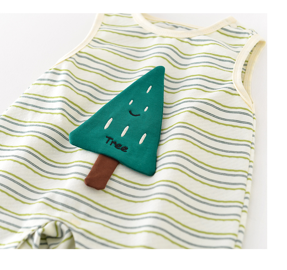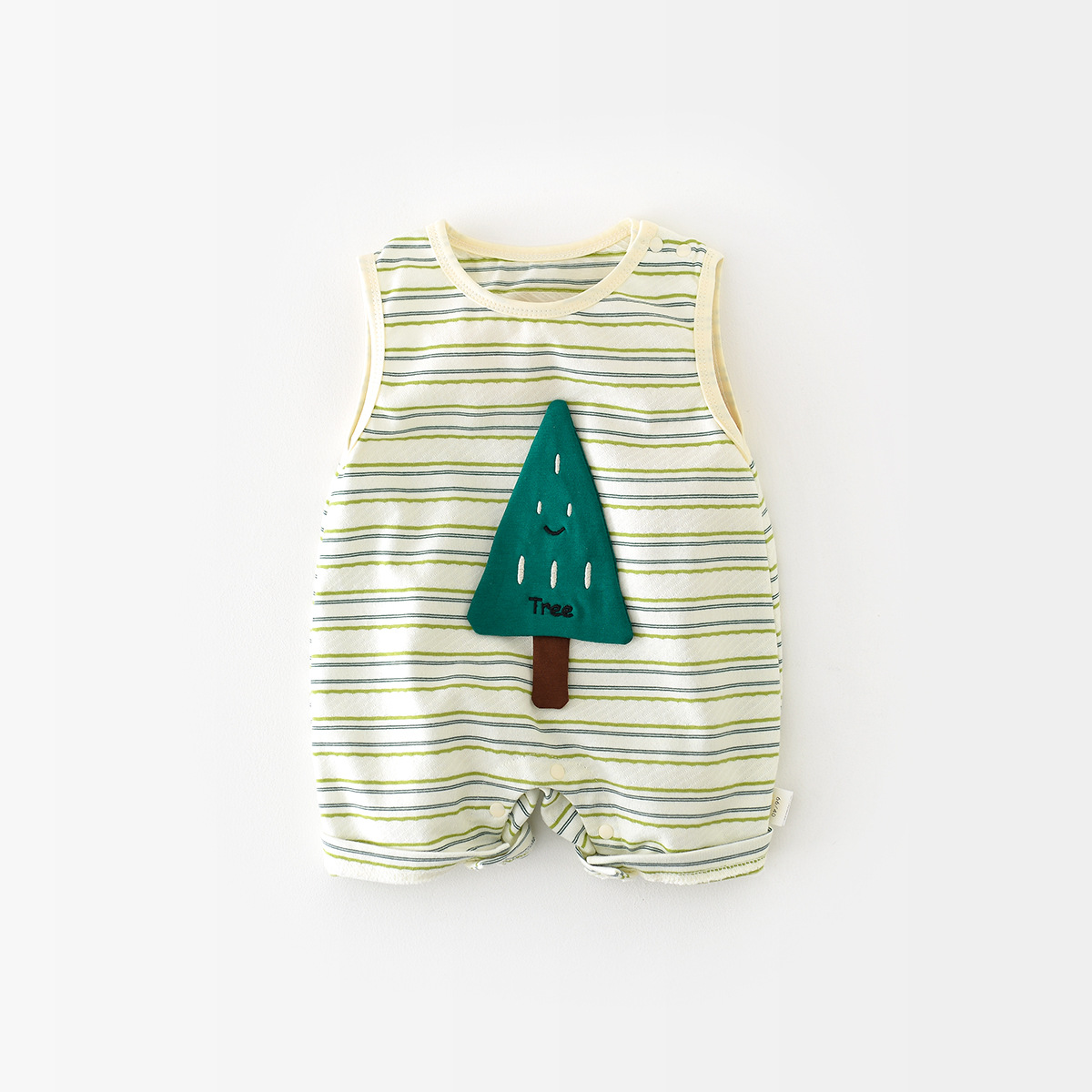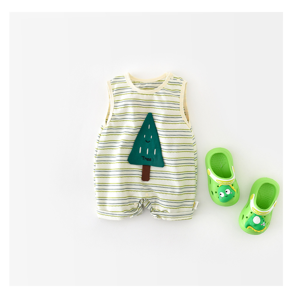 아기 점프 수트 여름 소년과 소녀 아기 한국 스타일 녹색 줄무늬 만화 작은 나무 멋진 신생아 민소매 romper