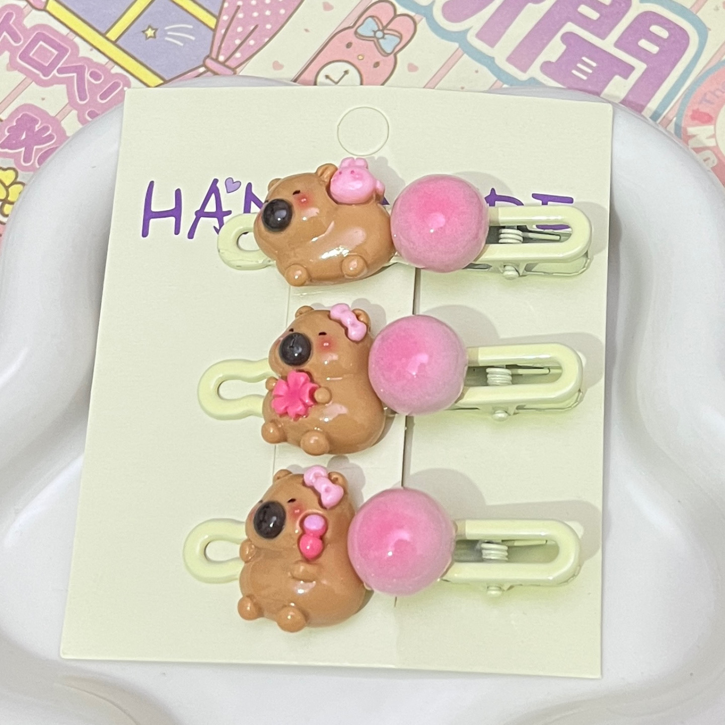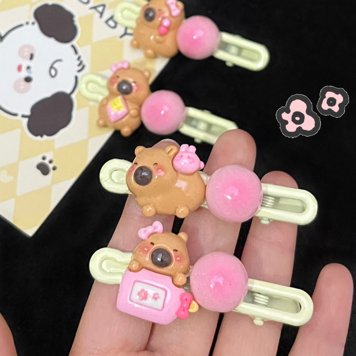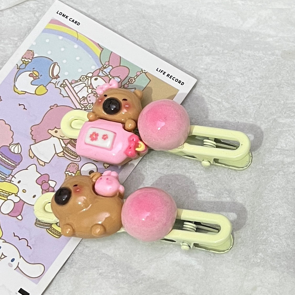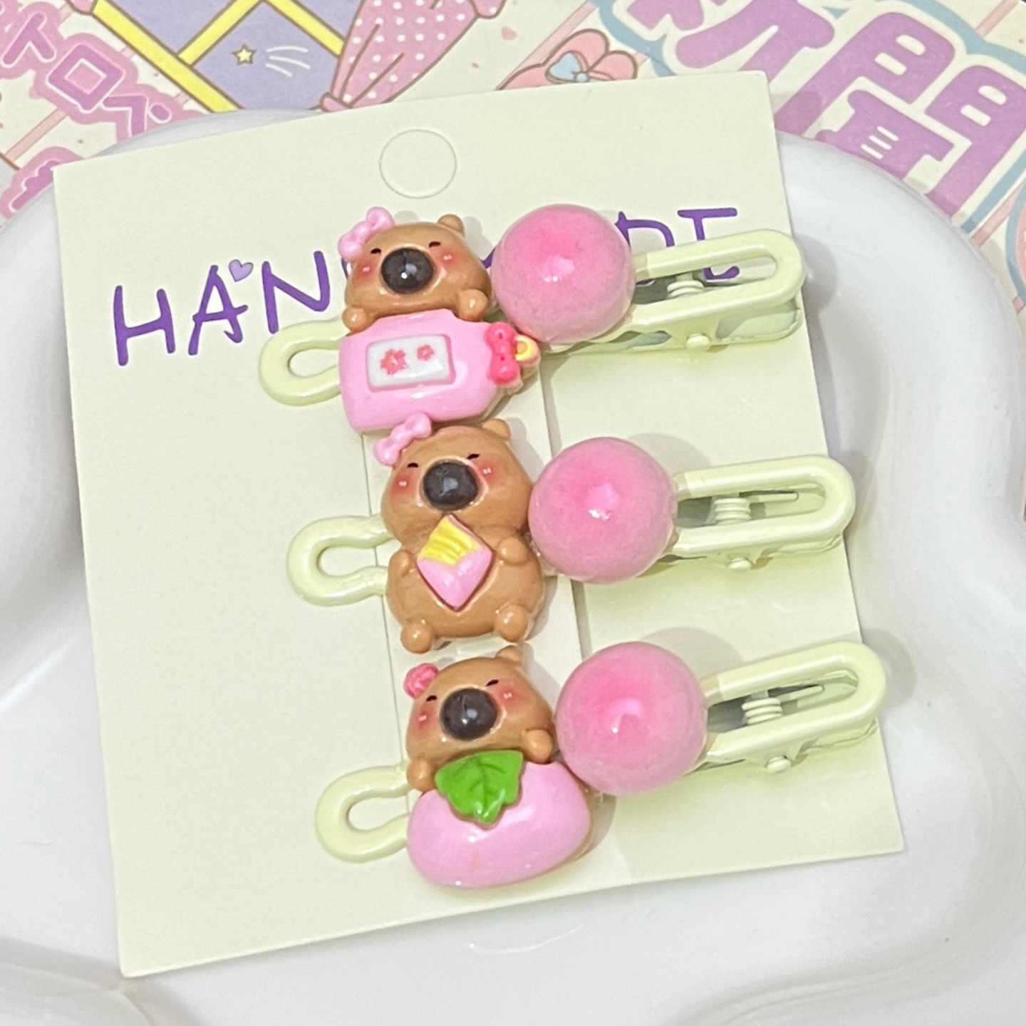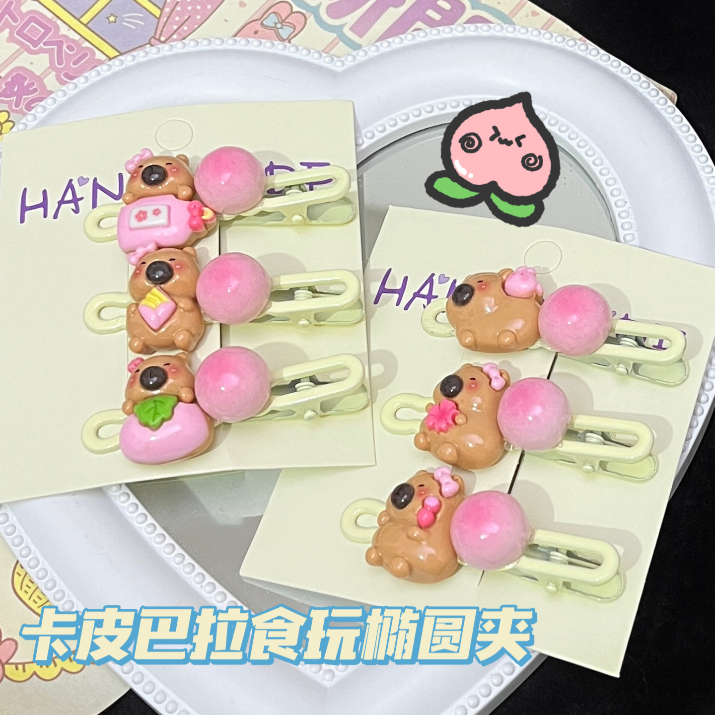 카파 발라 음식과 플레이 타원형 클립 만화 소녀 하트 사이드 클립 학생 머리핀 커플 달콤한 머리 장식 헤어 액세서리