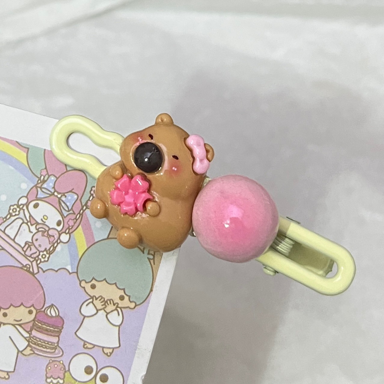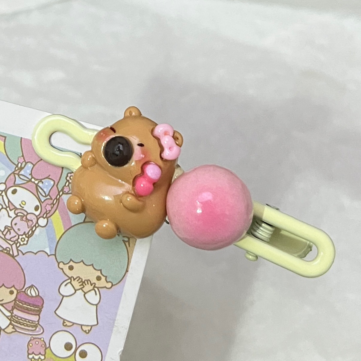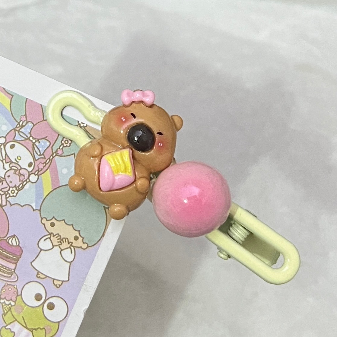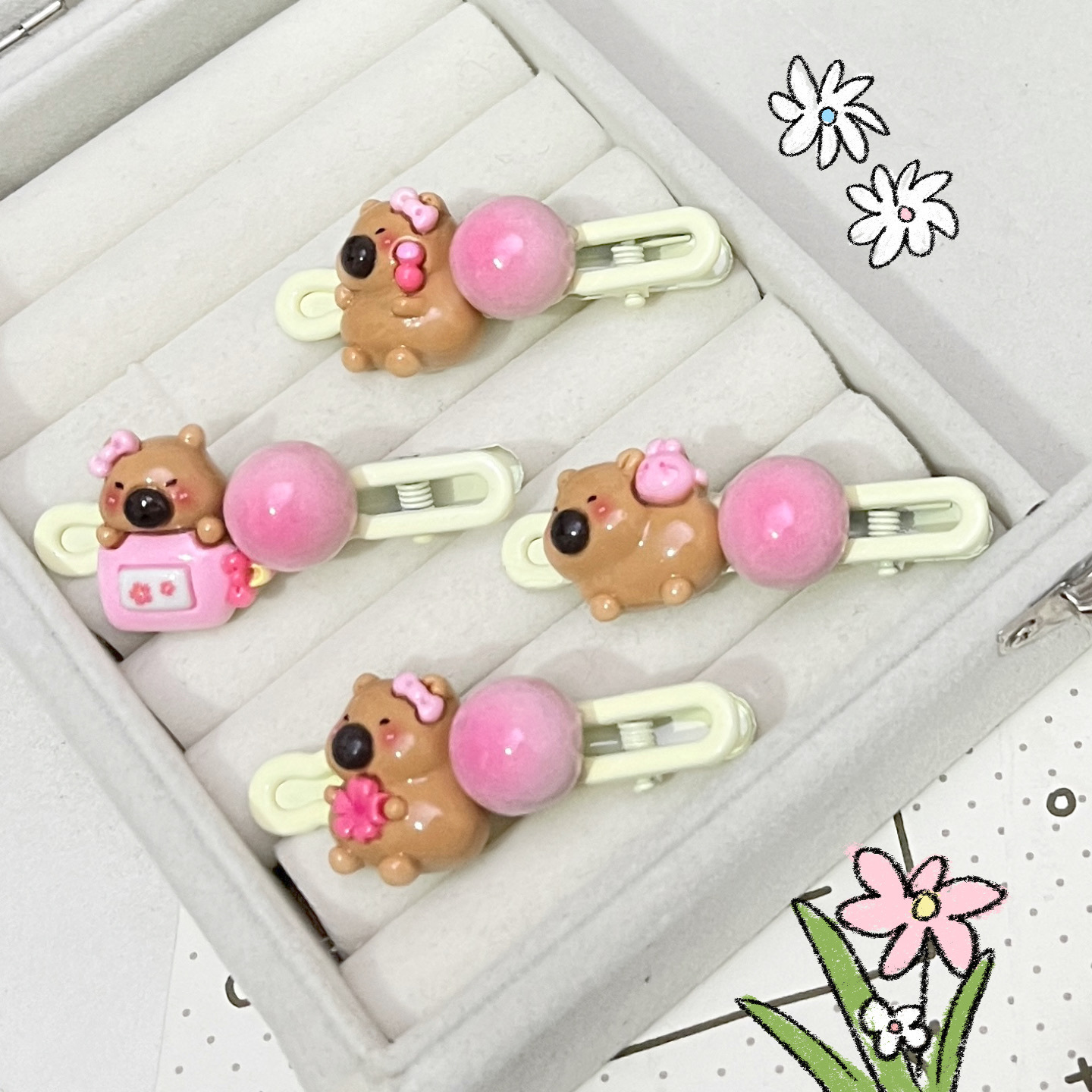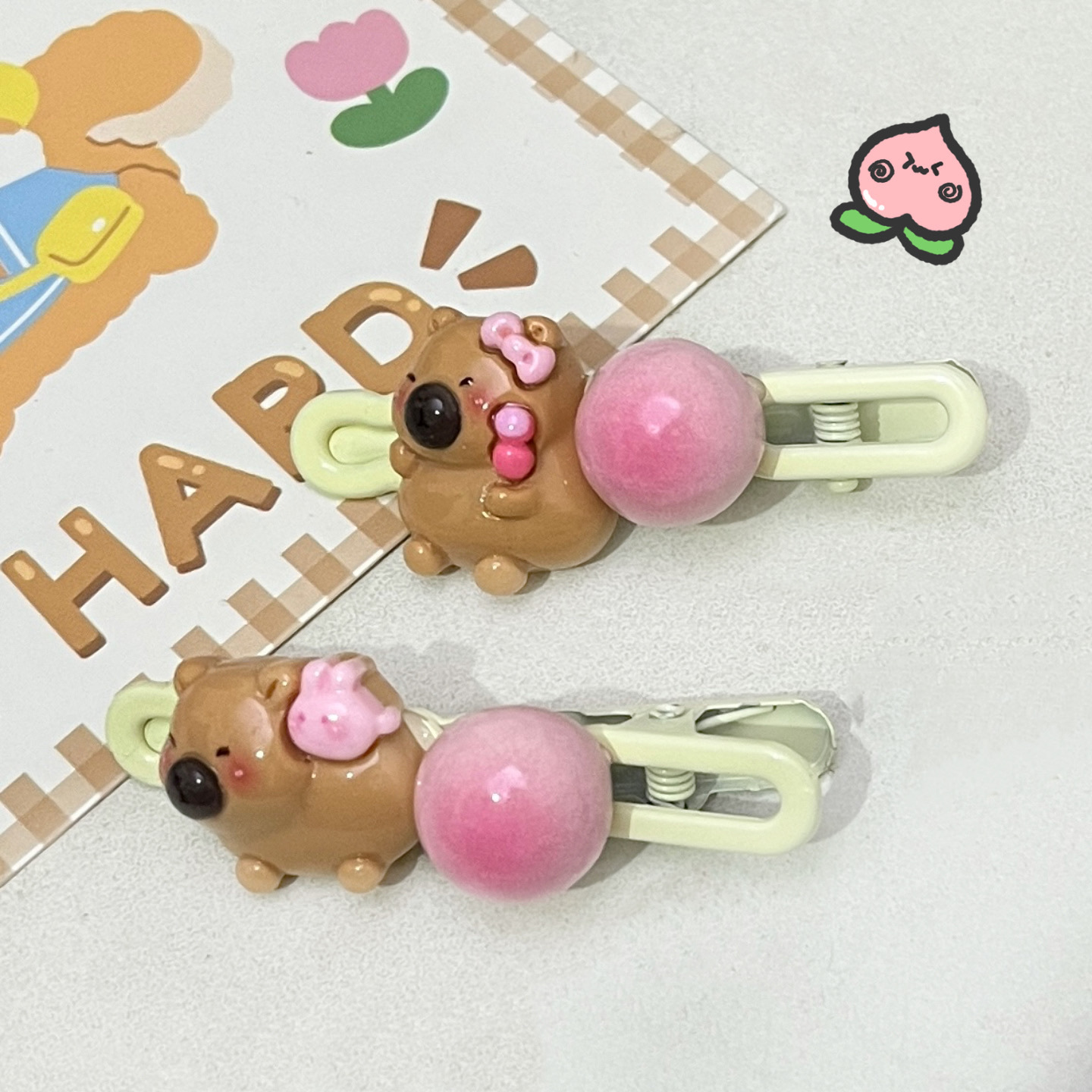 • 카피바라 음식과 놀이 타원형 클립 [복숭아 꽃병]]
