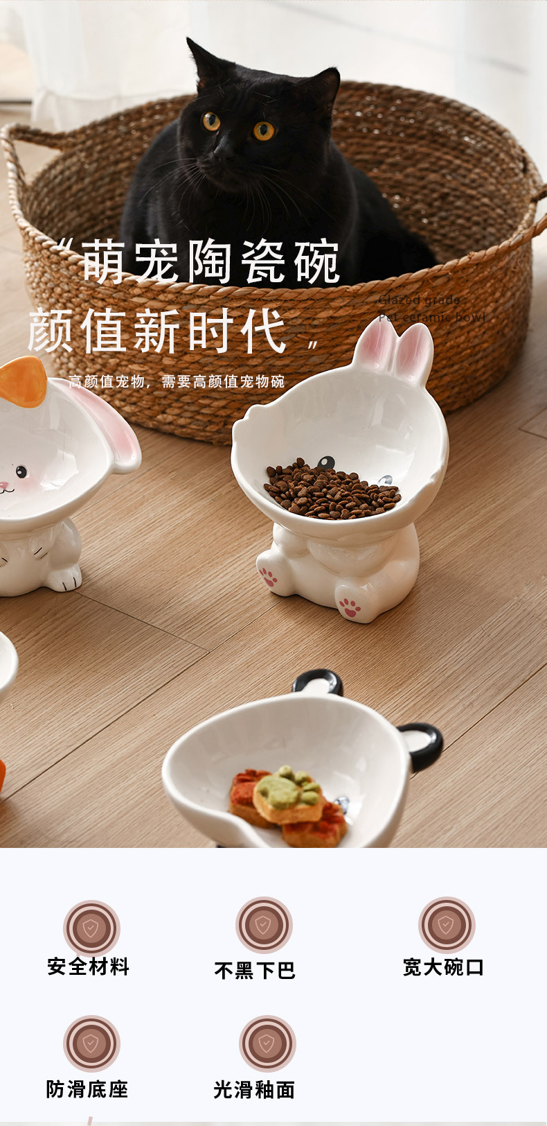 고양이 그릇 세라믹 보호 자궁 경부 척추 마시는 그릇 애완 동물 용품 귀여운 비스듬한 입 안티 노크 개 밥 그릇 고양이 먹이 그릇