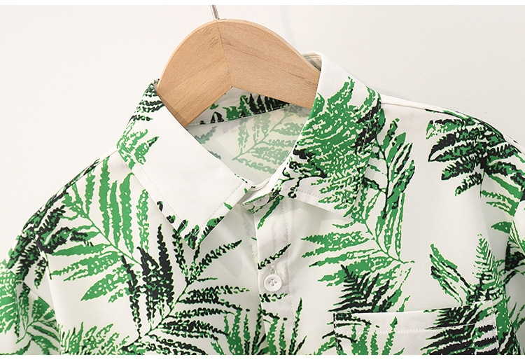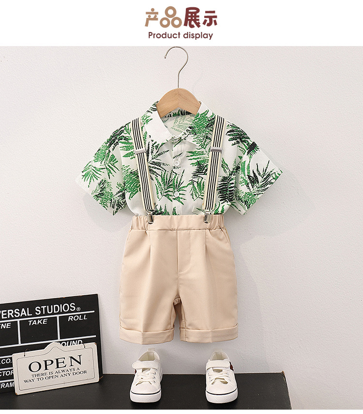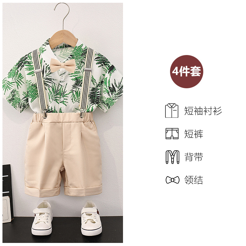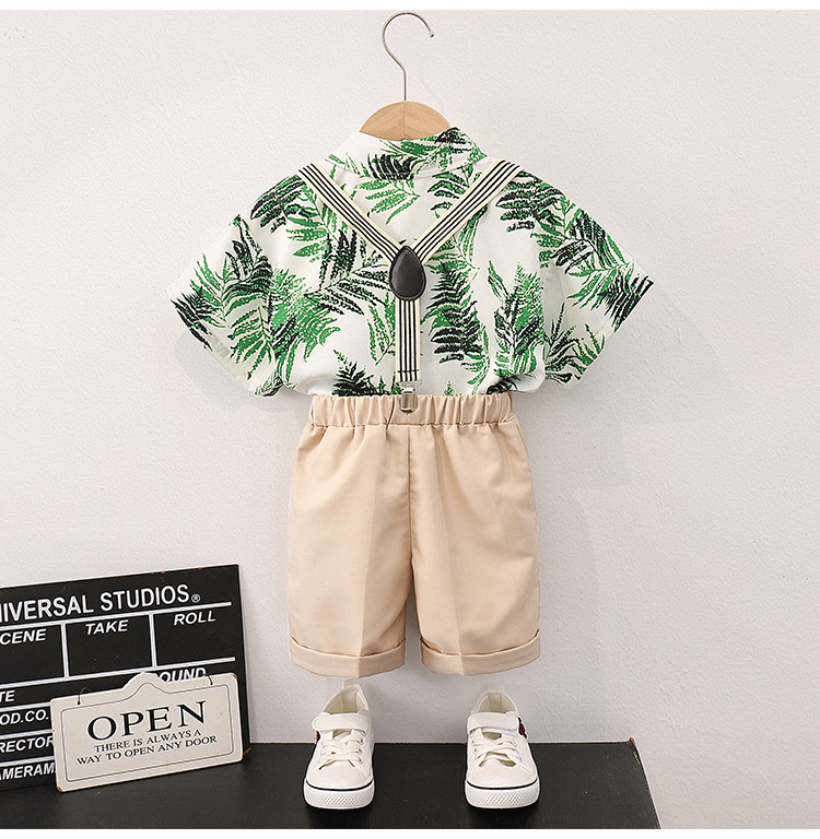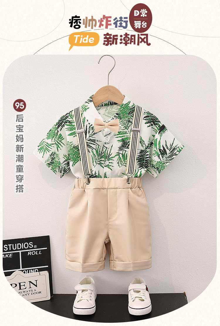 어린이 의류 소년의 반팔 꽃 무늬 셔츠 여름 새로운 하와이 휴가 스타일 Ruan 잘 생긴 어린이 캐주얼 꽃 무늬 셔츠 서스펜더 바지
