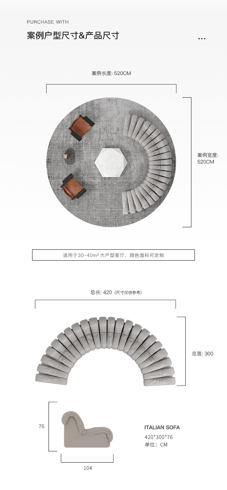• 대형 평방미터 권장 사항: 왼쪽 1개 + 등받이 12개 + 오른쪽 1개【3.5m】분 라텍스 스타일 피부 친화적인 실리콘 가죽