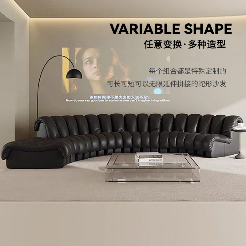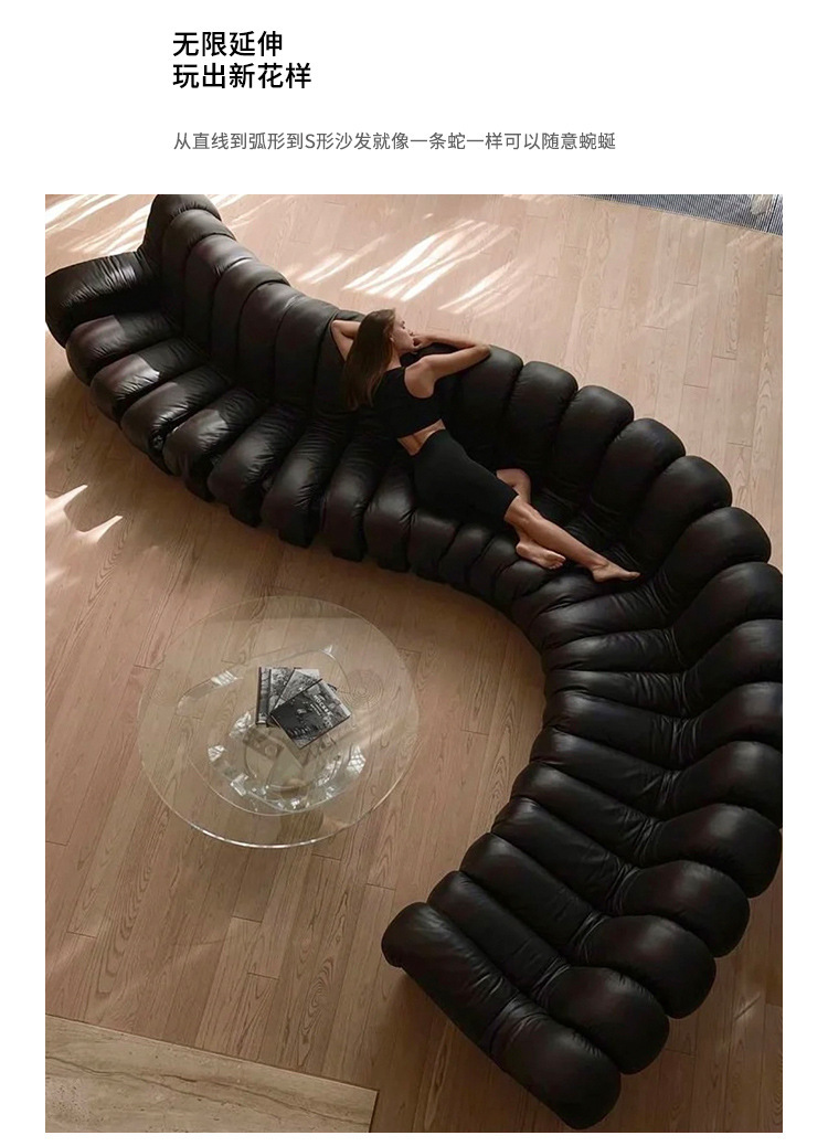 곡선형 소파 가죽 이탈리아 뱀 모양의 가죽 소파 현대적인 미니멀리스트 S자형 가죽 아트 모듈 조합 대형 소파