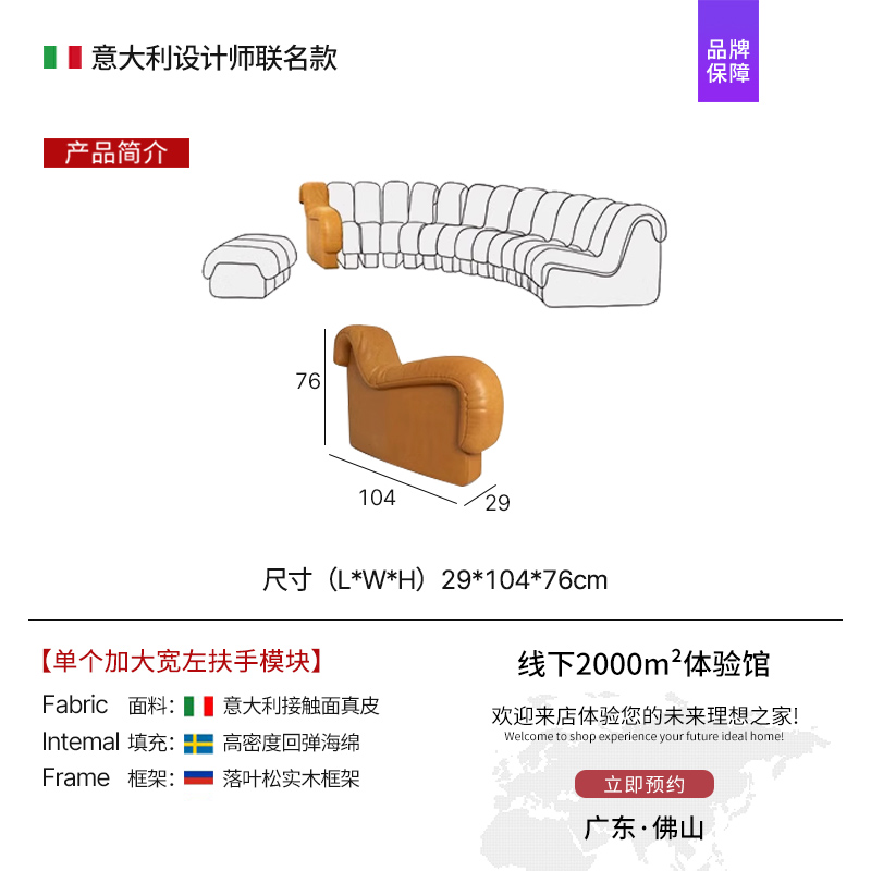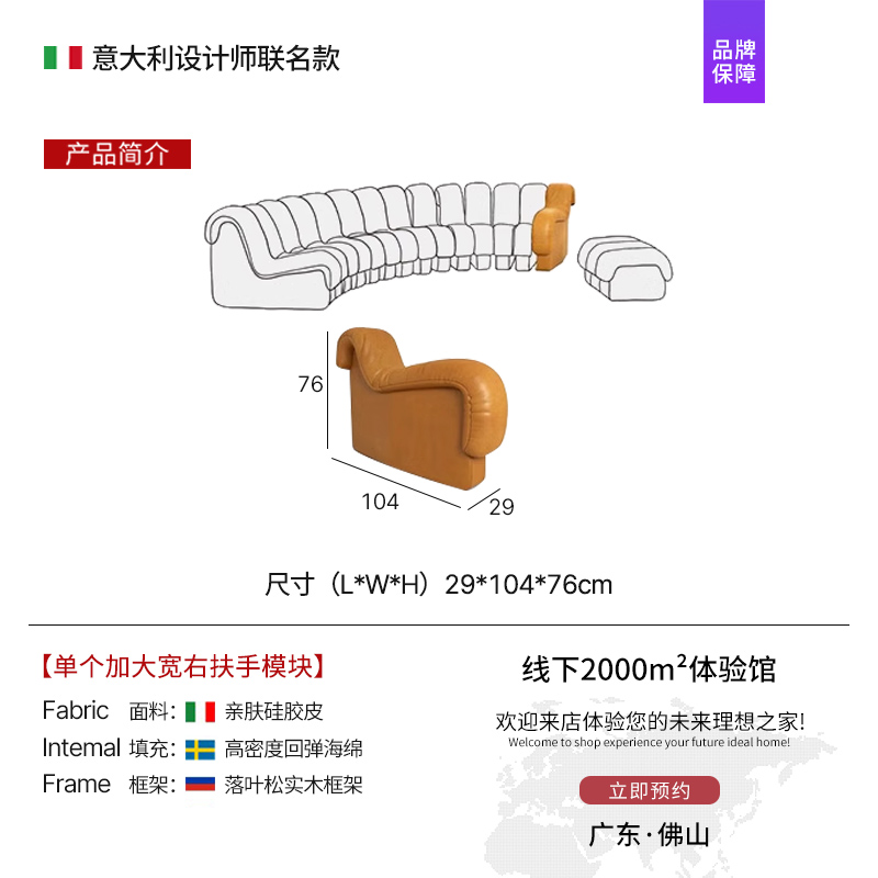 • 소형 아파트에 권장되는 프리미엄 조합: 왼쪽 팔걸이 1개 + 등받이 6개 + 오른쪽 팔걸이 1개 [ 2m ] 라텍스 스타일 피부 친화적인 실리콘 가죽