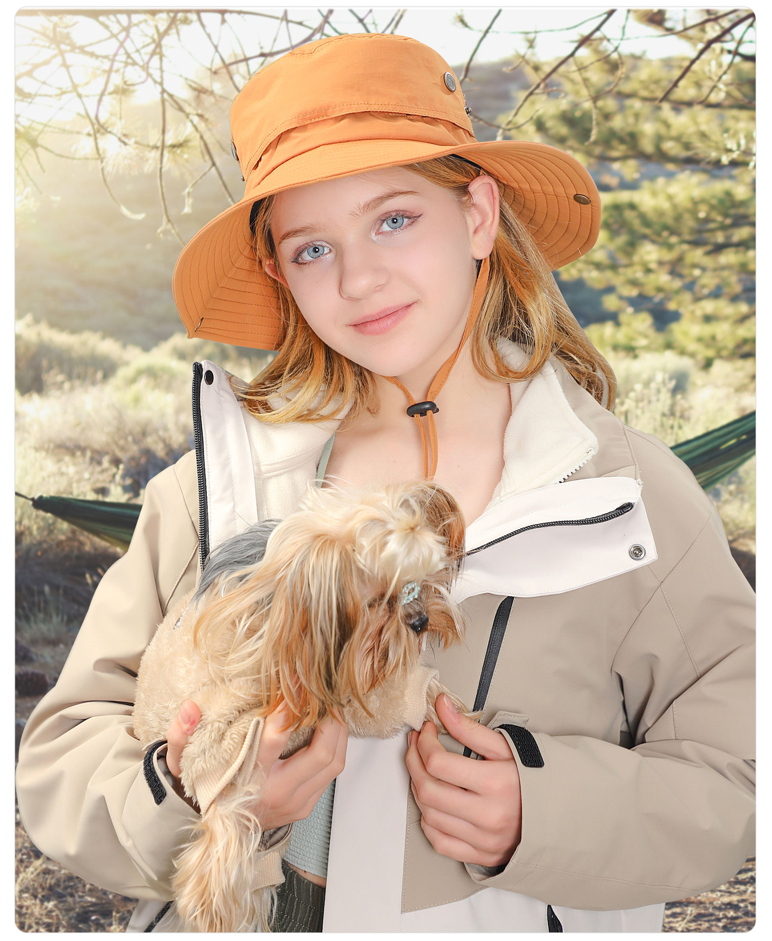 OEM烫画尼龙大帽檐防泼水遮阳帽 亚马逊爆款亲子款登山防晒透气帽