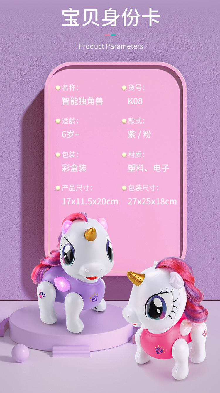 국경 간 어린이 원격 제어 음성 제어 프로그래밍 터치 감지 녹음 노래와 춤 지능형 AI 유니콘 대화 형 조기 교육 장난감스토어 가기