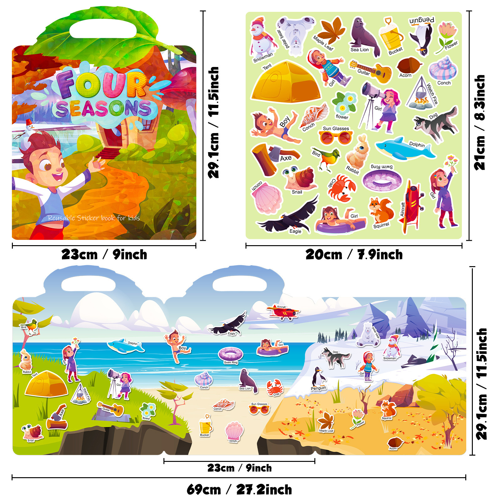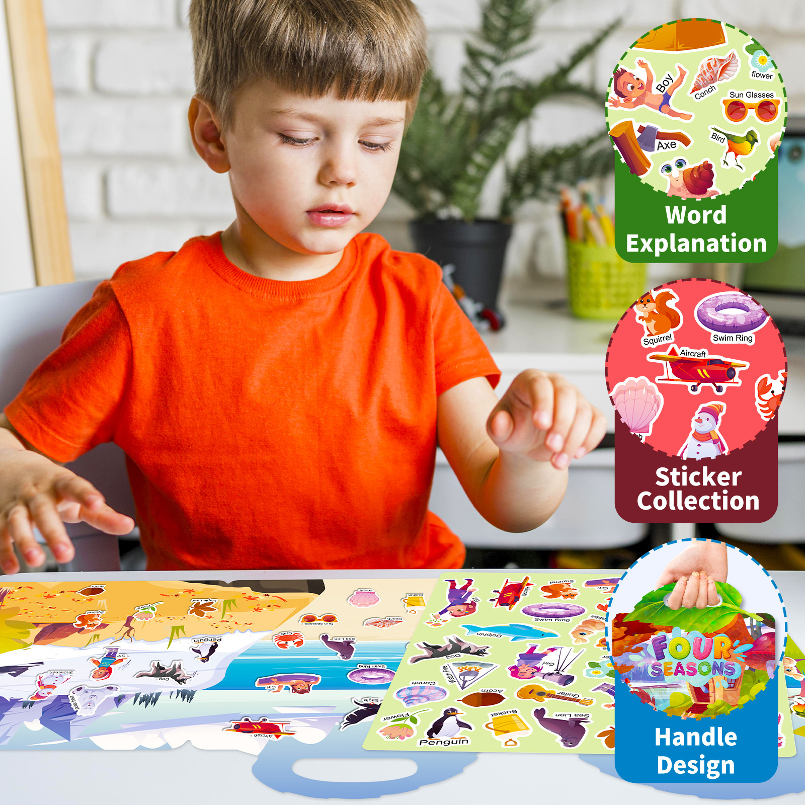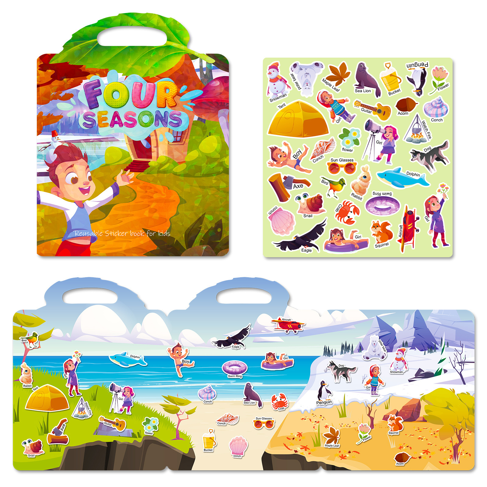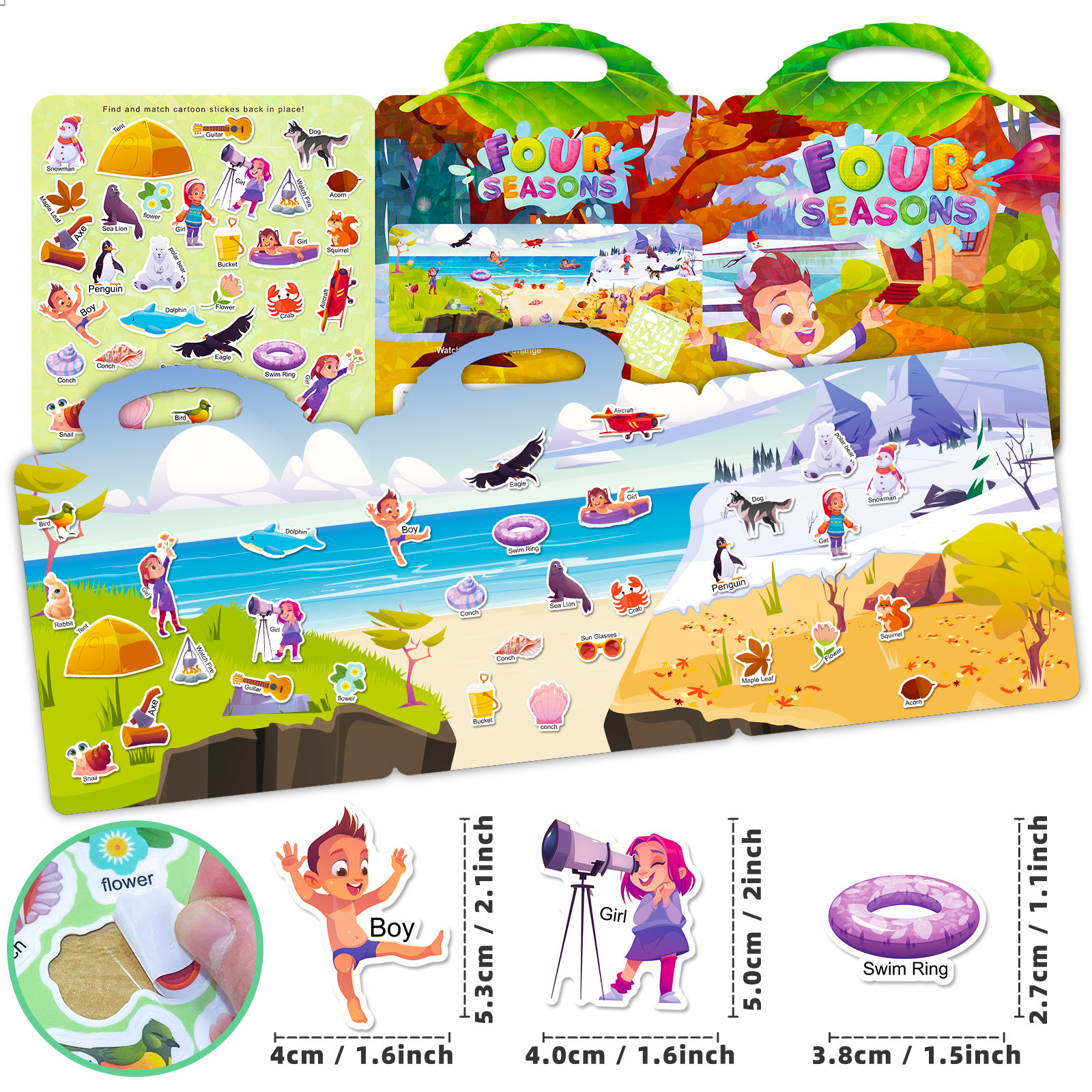 국경 간 어린이 조기 교육 사계절 책에 초점 교육 지능 절단 무료 DIY 젤리 스티커 책 육성에 초점