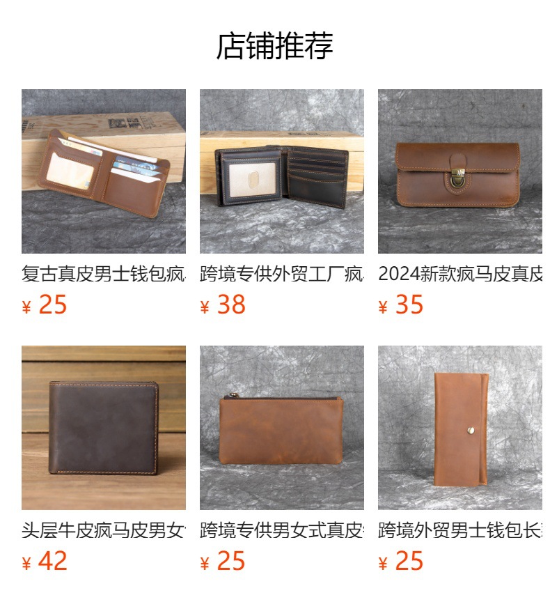 대외 무역 공예 공장 남성 가죽 지갑 메이진 클립 수평 1 층 소 가죽 미친 말 공예 복고풍 성격 가방