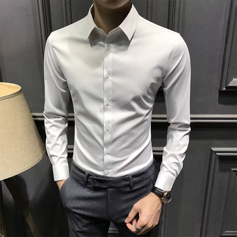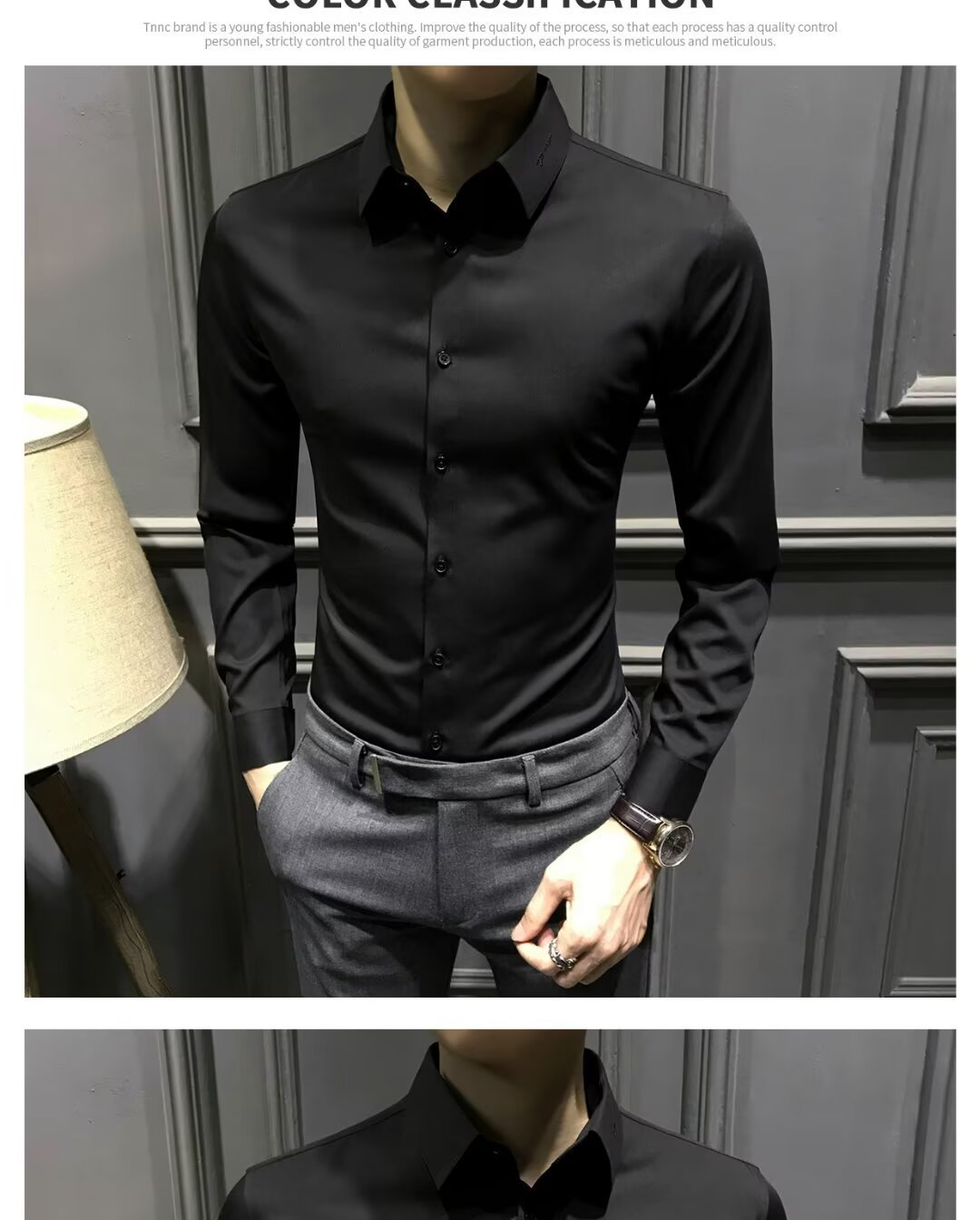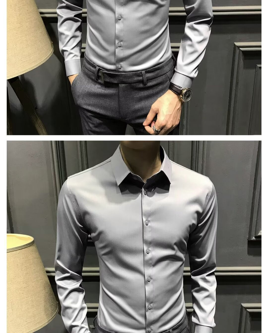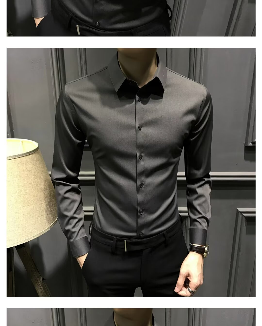 긴 소매 셔츠 남성 2024 봄 새로운 캐주얼 올 매치 라이트 럭셔리 느슨한 단색 셔츠 남성 아우터 웨어 젊고 중년