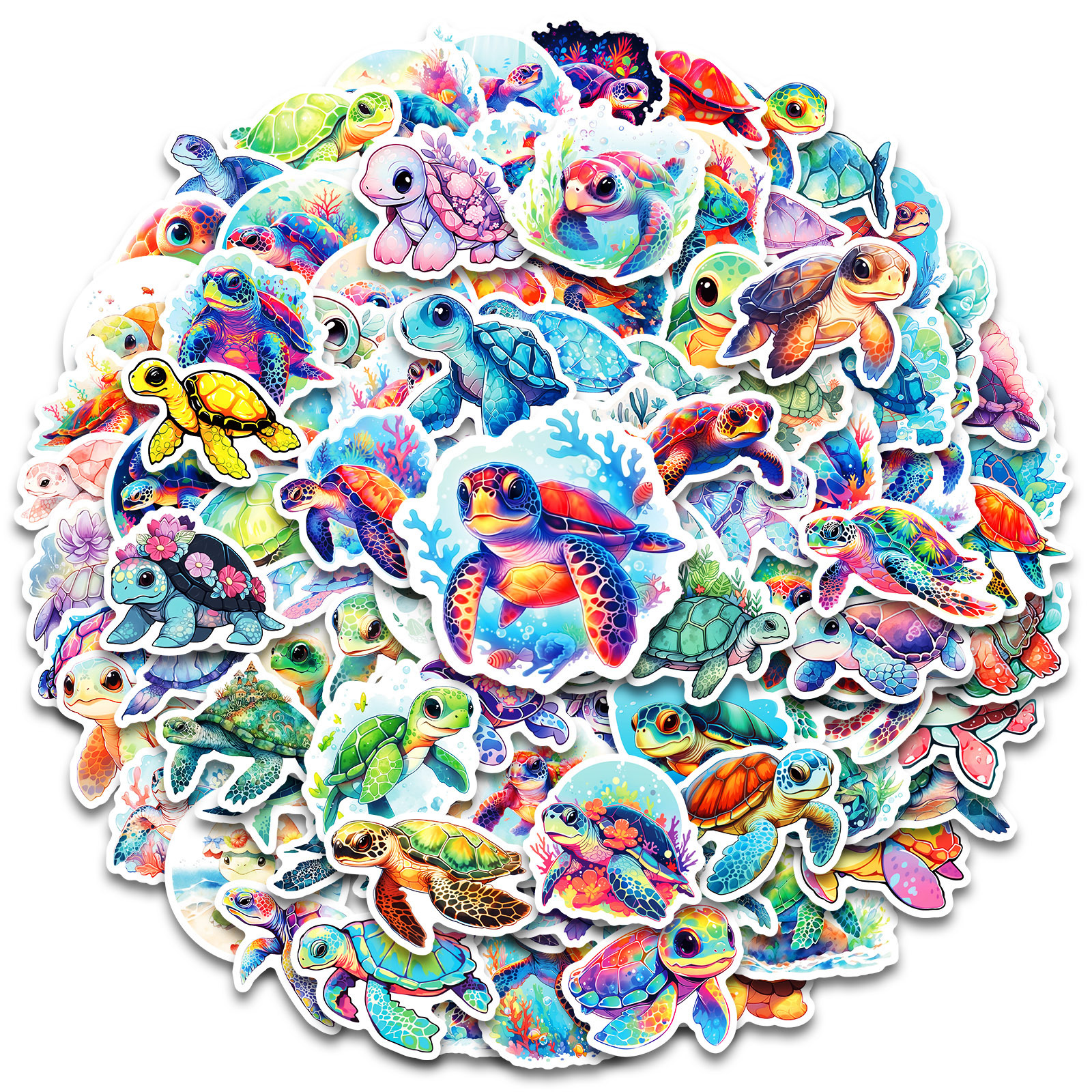 100 장 거북이 만화 바다 거북 스티커 국경 간 뜨거운 판매 TEMU 푸른 바다 거북 바다 작은 거북 낙서 스티커