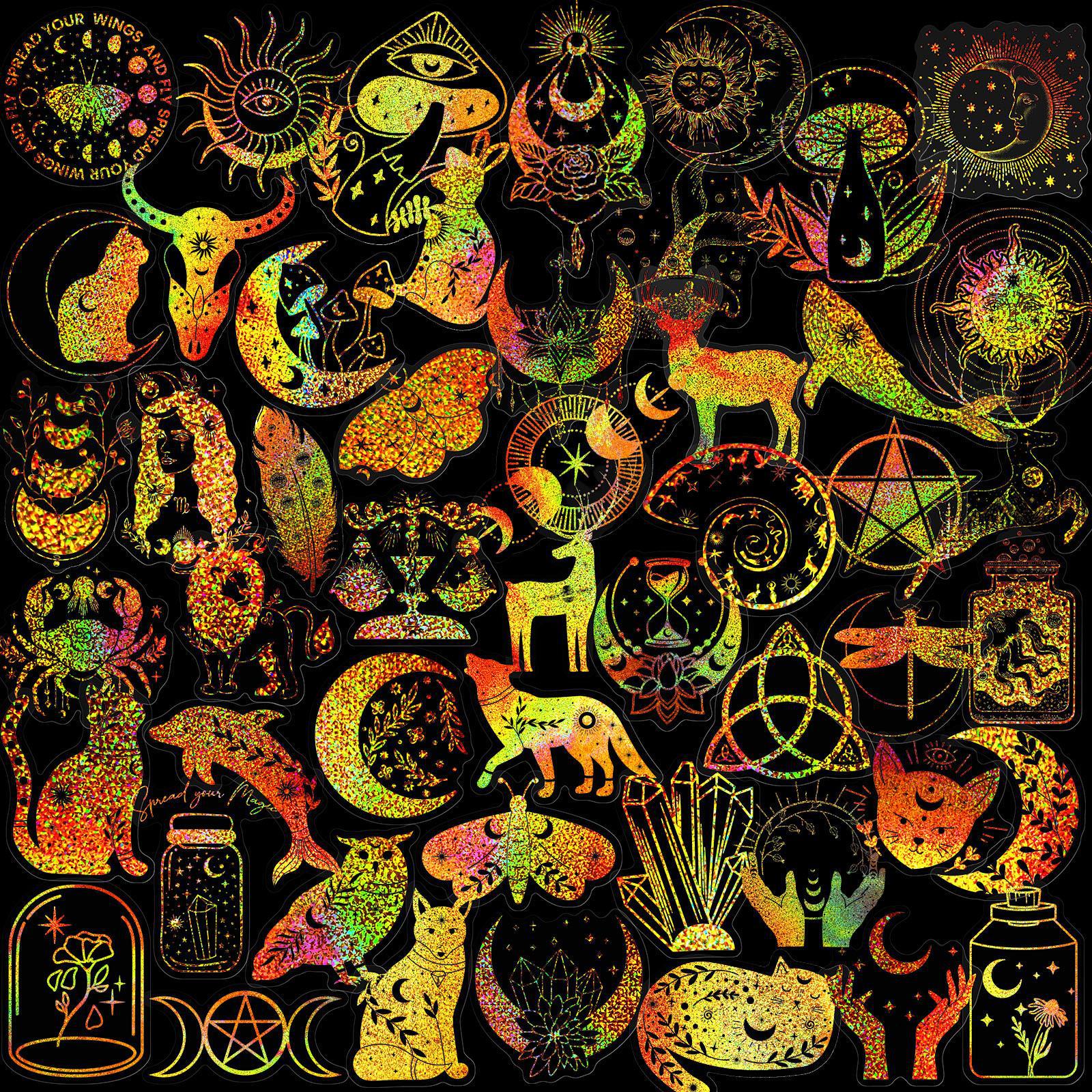 100장 대박 세일 투명 골드 레이저 매직 PET 스티커 레이저 골드 반짝이 특수 모양 핸드북 소재 홀로그램 스티커스토어 가기