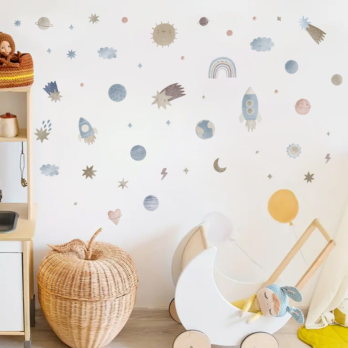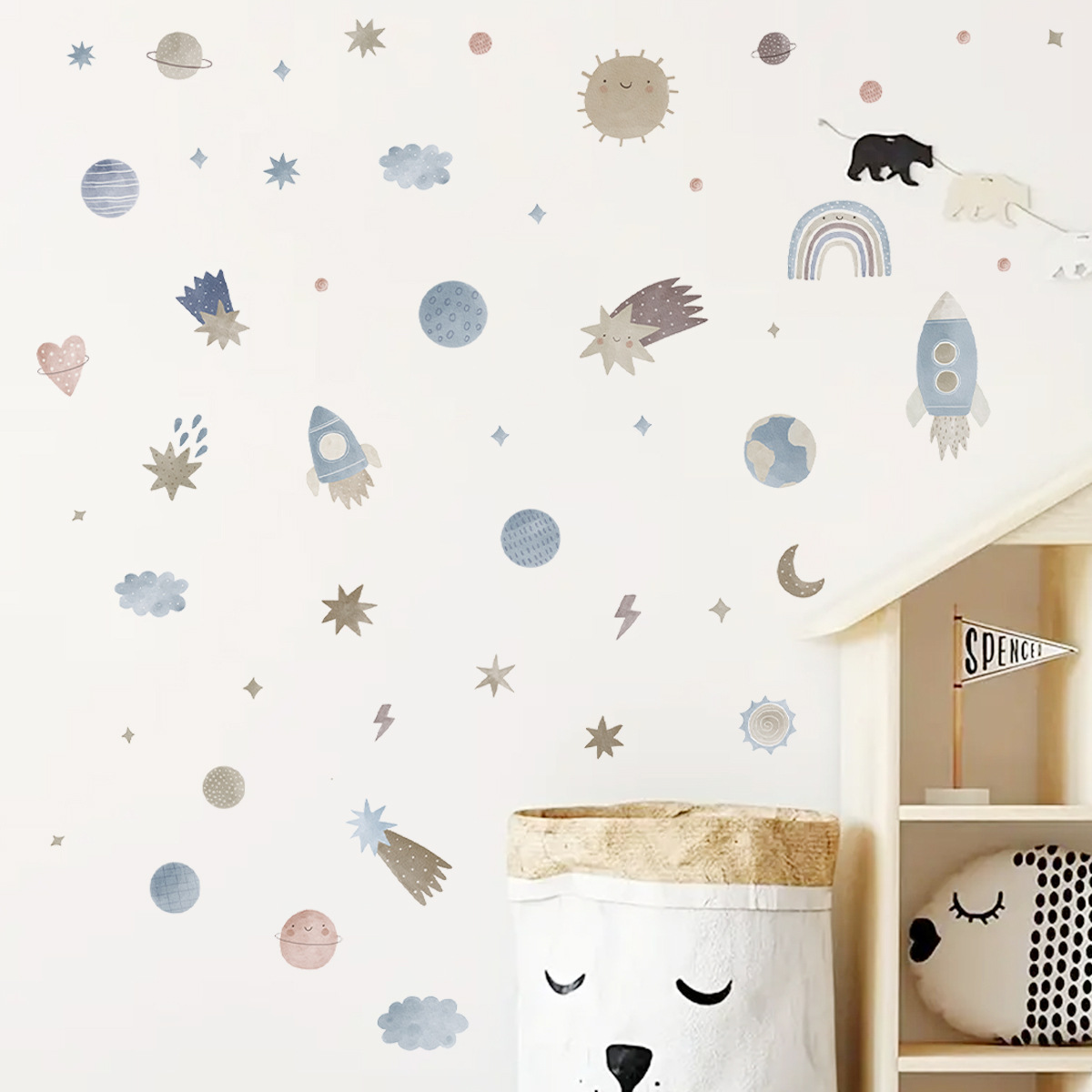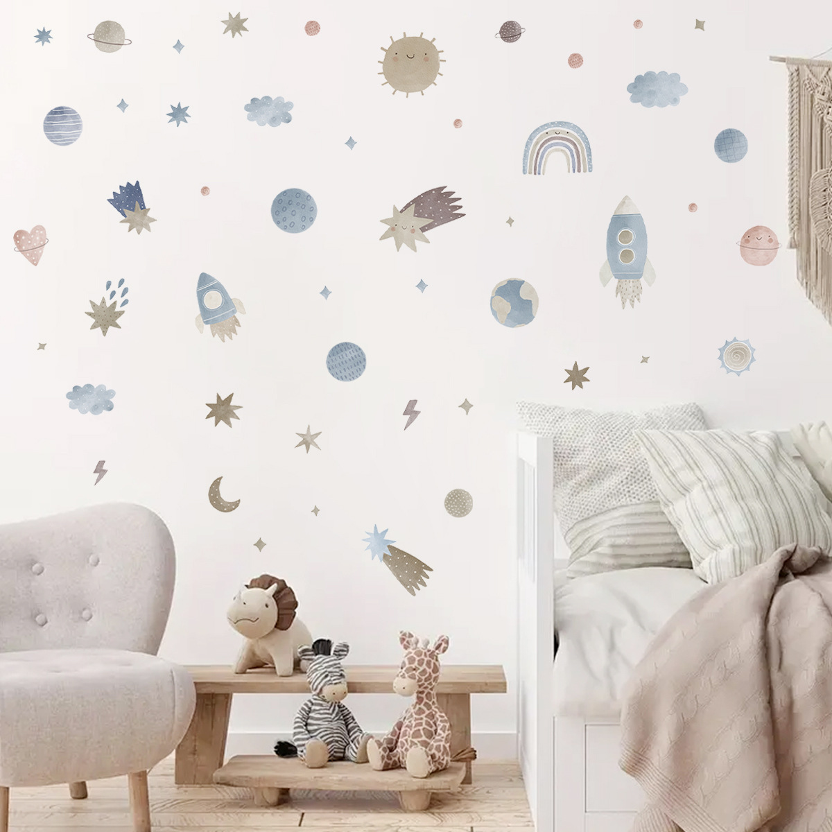BR0057C 만화 어린이 재미있는 공간 행성 우주선 자체 접착 벽 스티커 집 어린이 방 장식 스티커스토어 가기