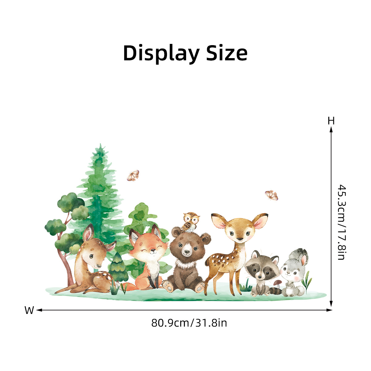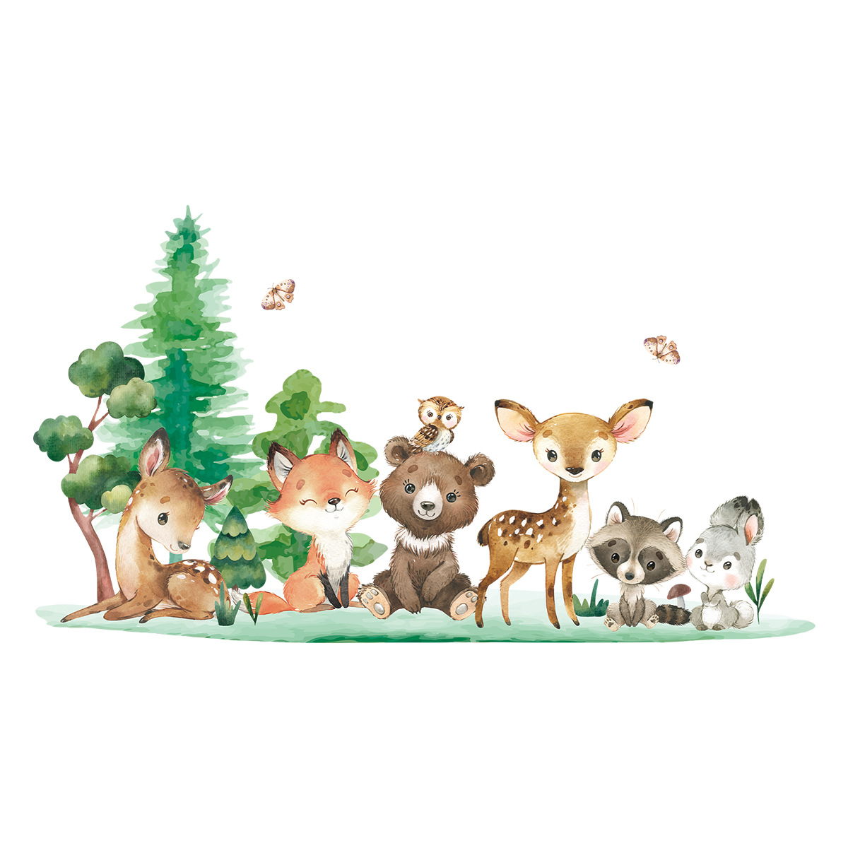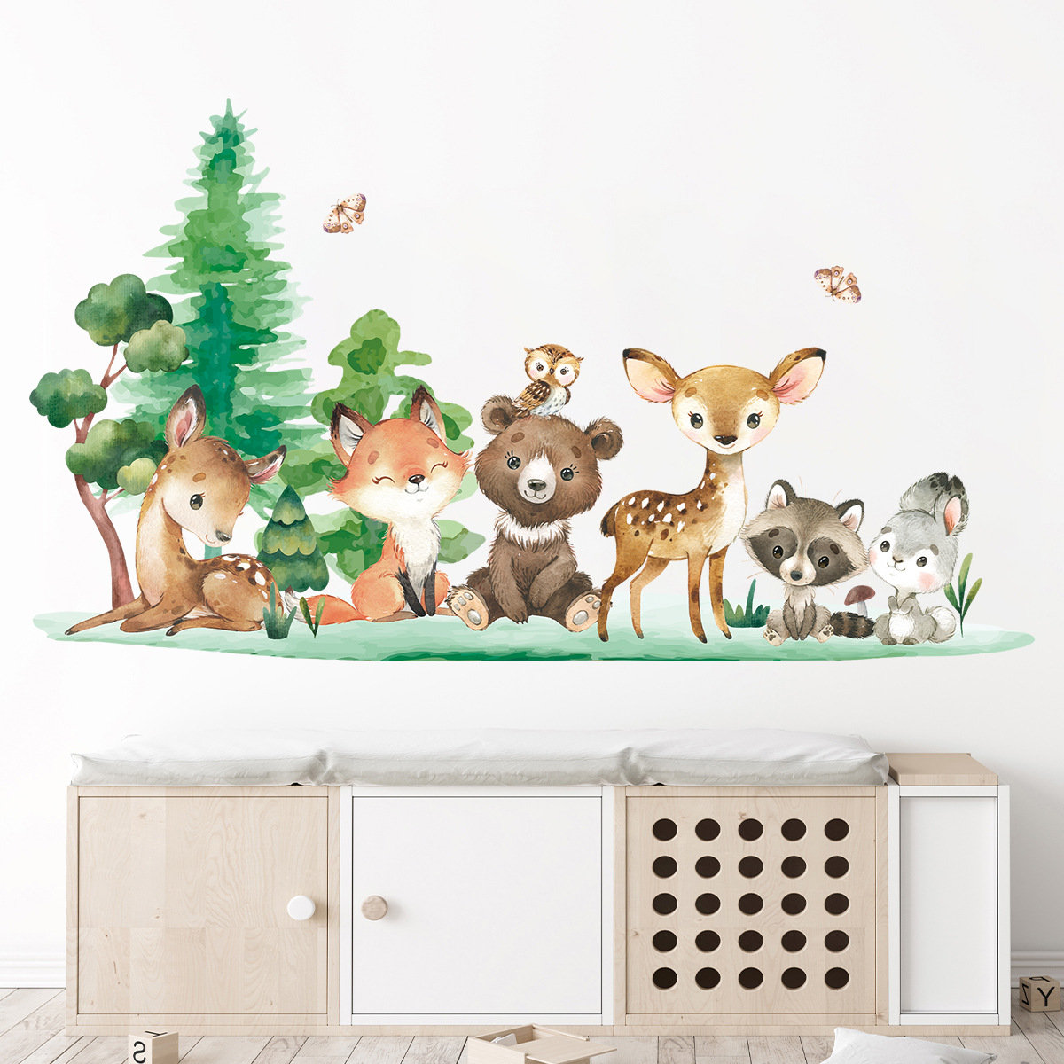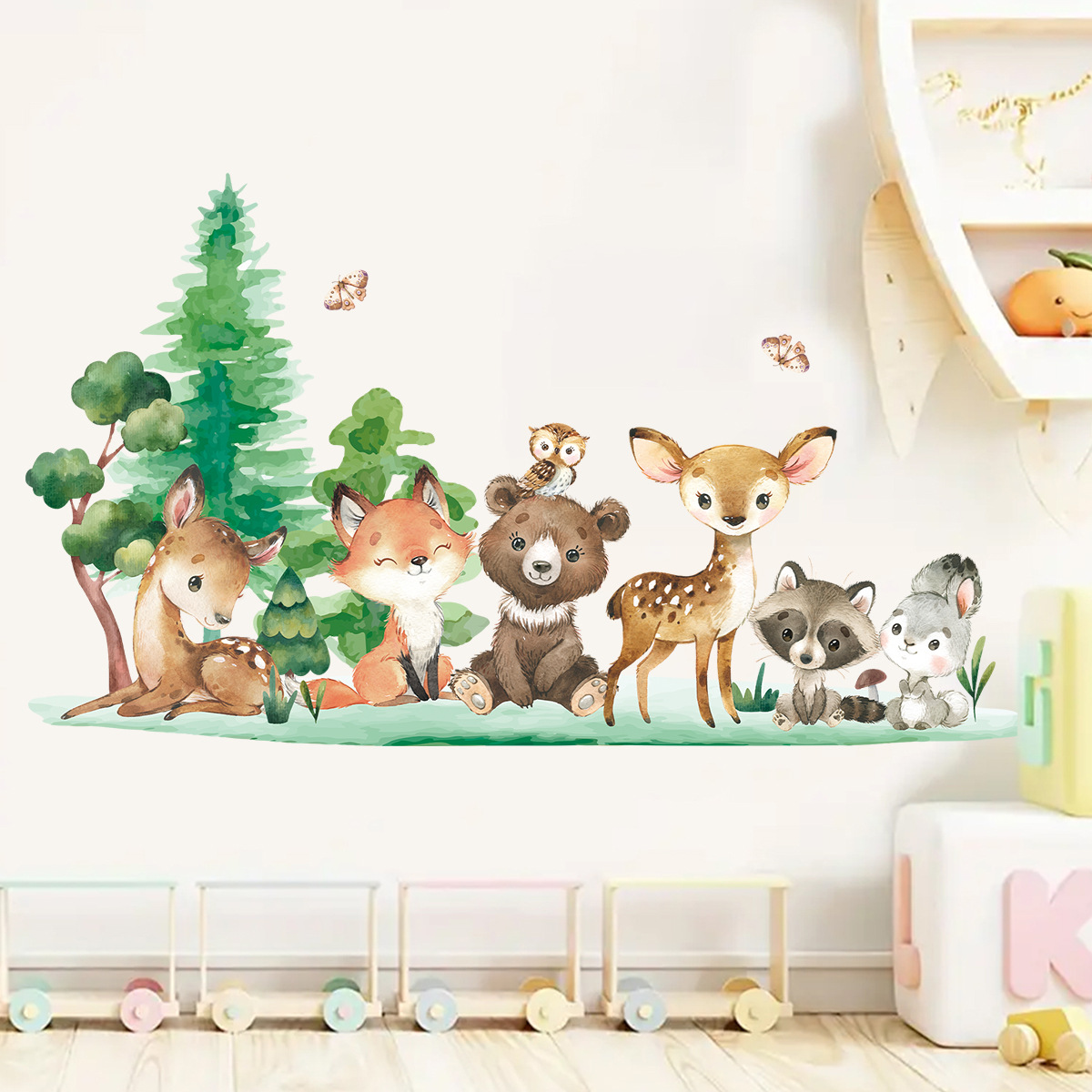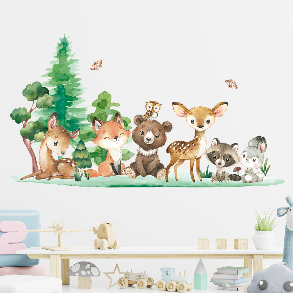BR0054F 만화 수채화 숲 잔디 작은 동물 자기 접착 벽 스티커 거실 침실 어린이 방 장식 스티커스토어 가기