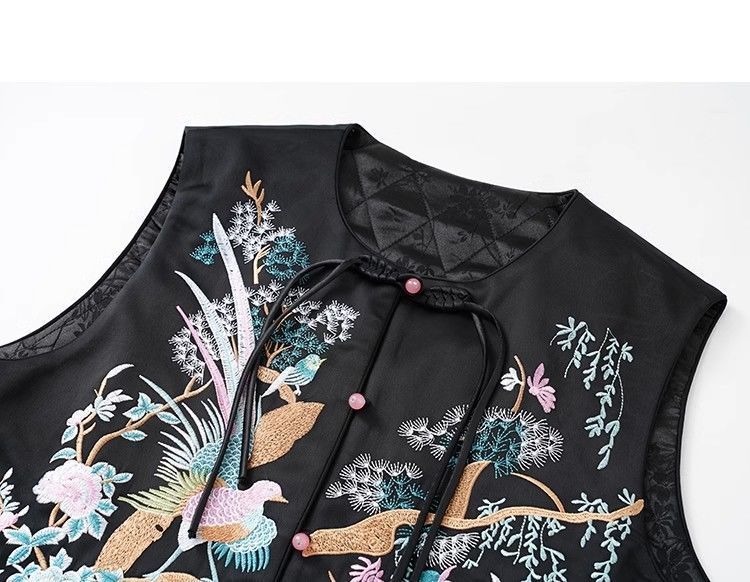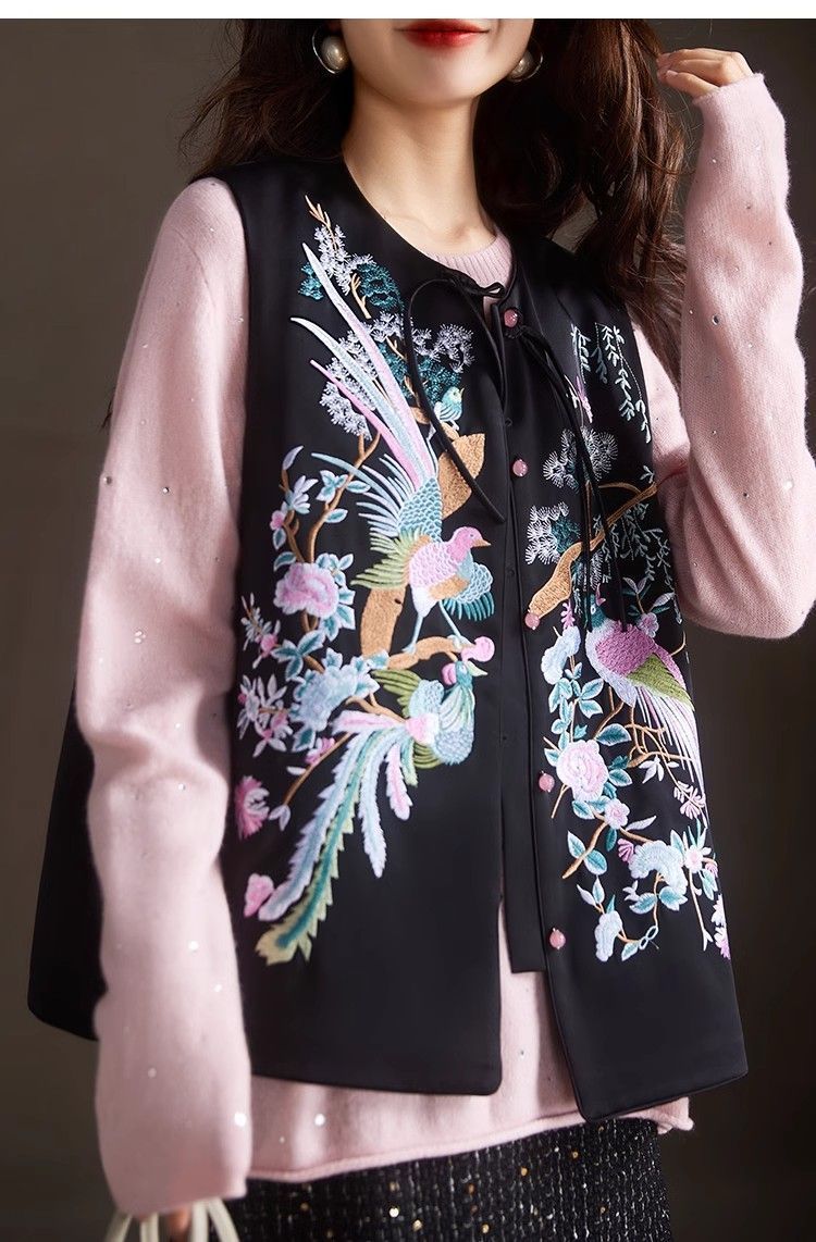 200 진 고급 대형 패션 자수 봄 조끼 여성 24 년 대형 캐주얼 탑 새로운 빈티지 여성복
