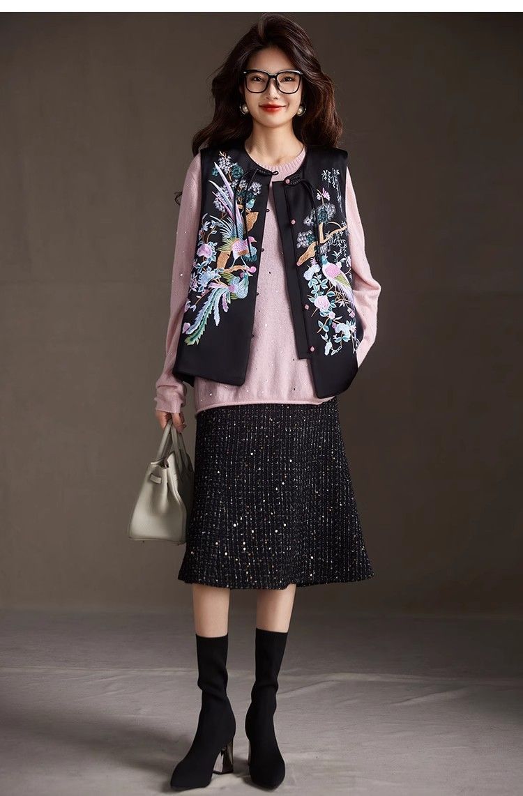 200 진 고급 대형 패션 자수 봄 조끼 여성 24 년 대형 캐주얼 탑 새로운 빈티지 여성복스토어 가기