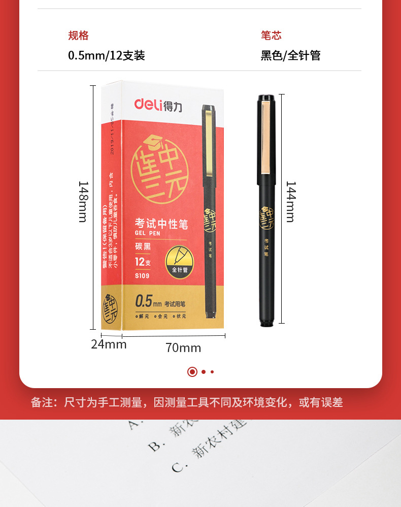 Deli S109 테스트 젤 펜 0.5mm 풀 바늘 튜브 연속 고등학교 입학 시험 학생스토어 가기