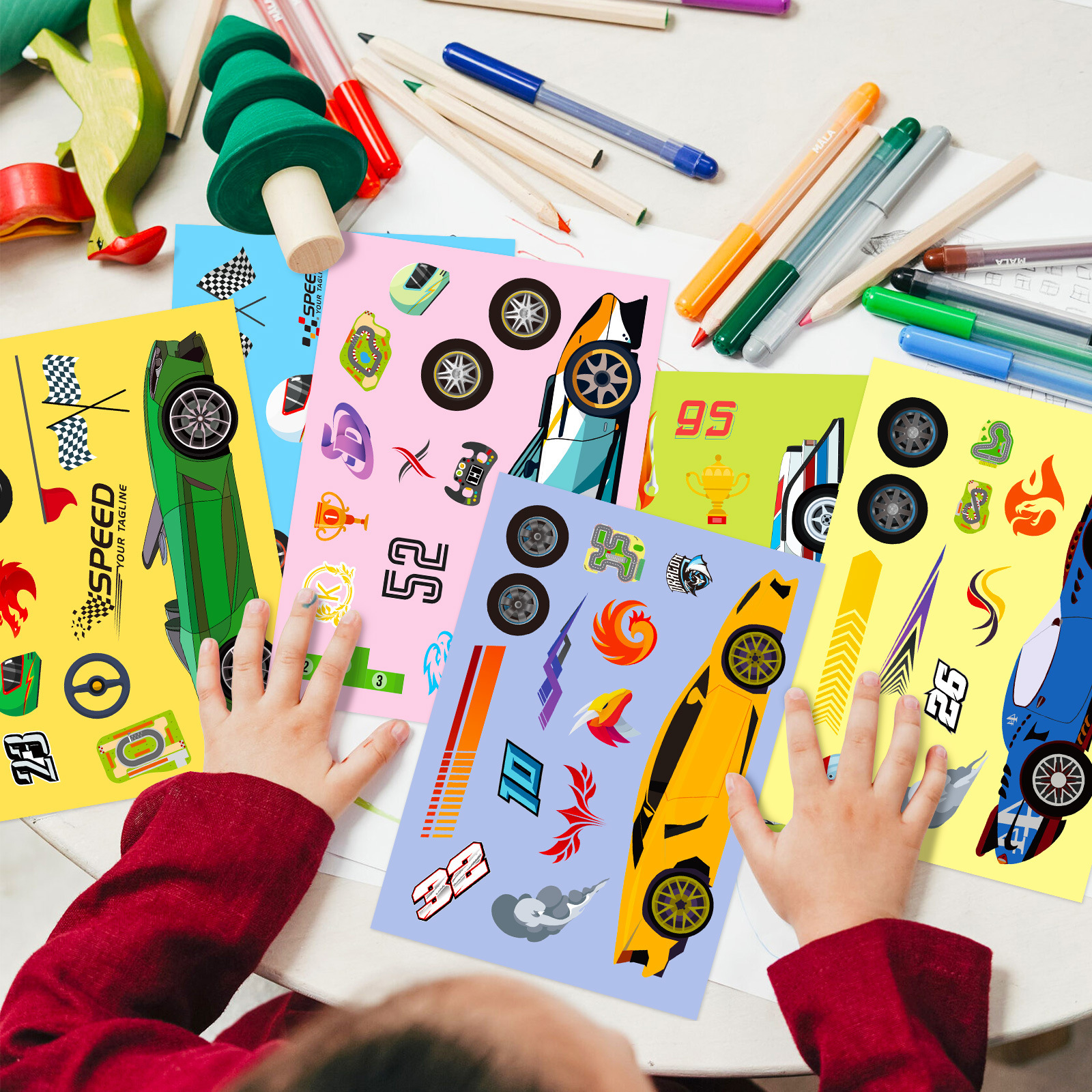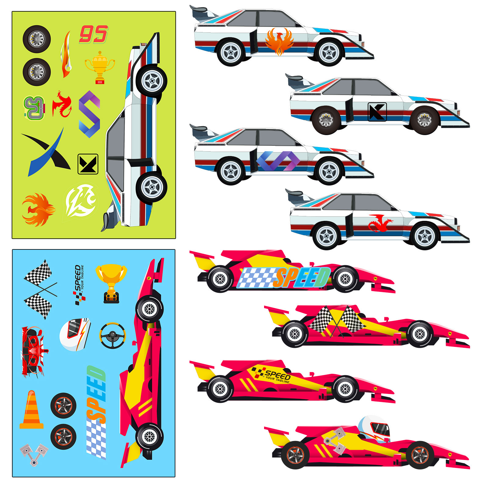 6 px/팩 레이싱 카 어셈블리 퍼즐 diy 어린이 퍼즐 장난감 스티커 국경 새로운 어린이 DIY 스티커 재고