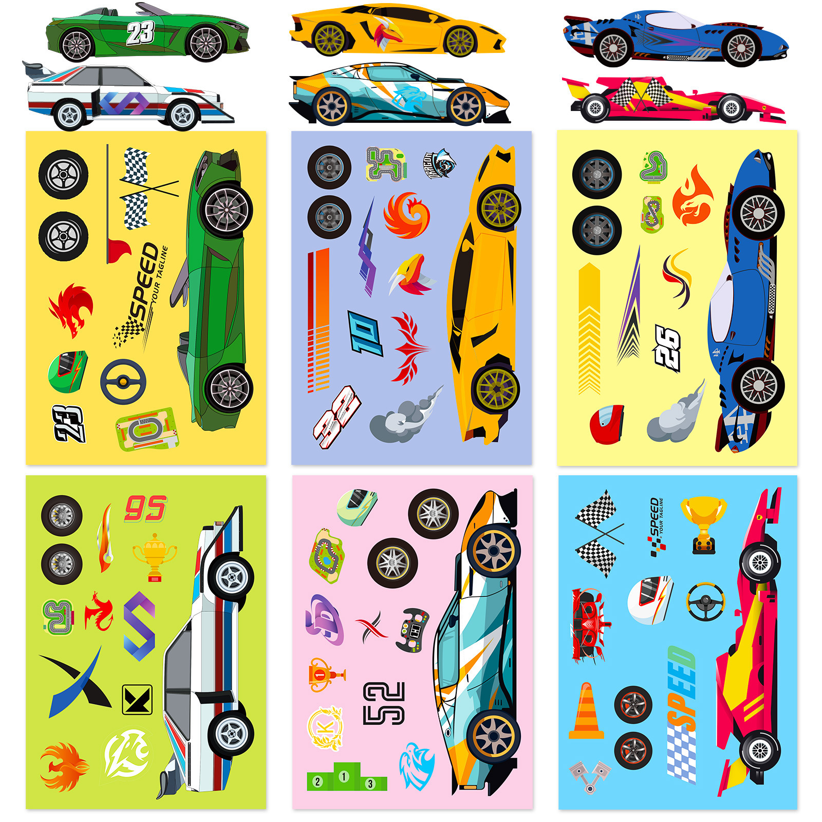 6 px/팩 레이싱 카 어셈블리 퍼즐 diy 어린이 퍼즐 장난감 스티커 국경 새로운 어린이 DIY 스티커 재고스토어 가기