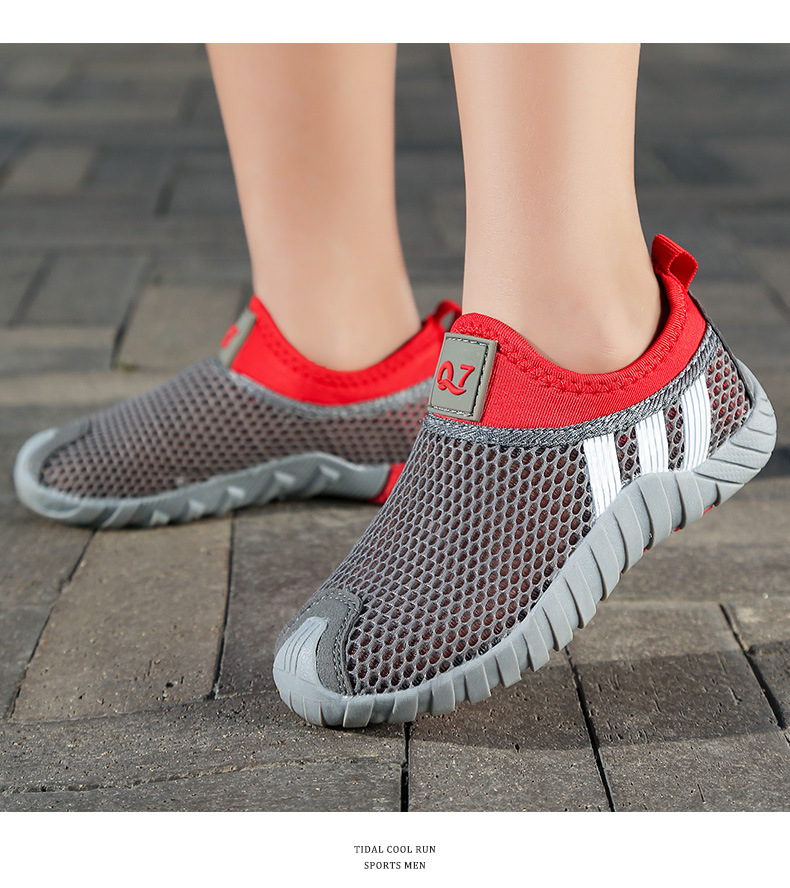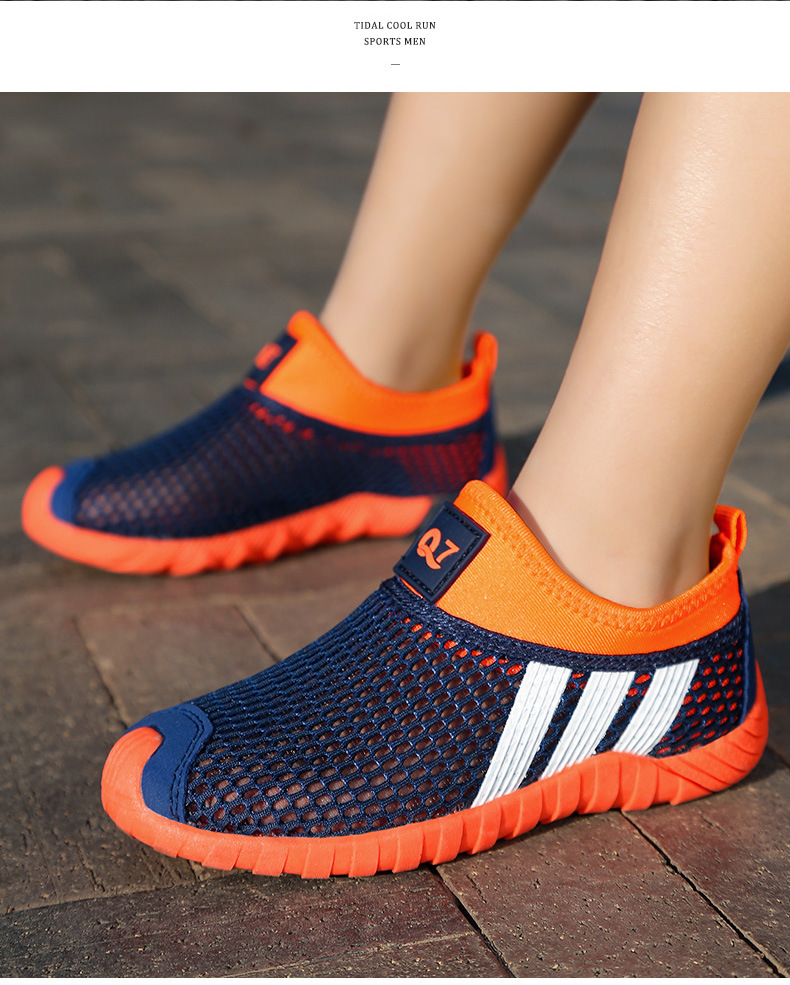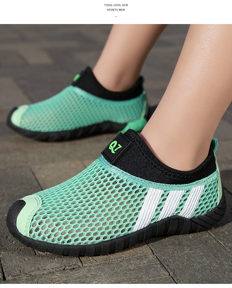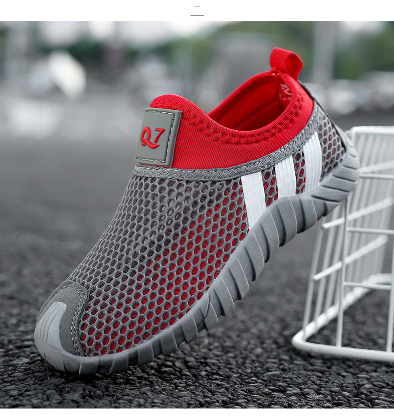 소년 신발 여름 메쉬 신발 어린이 속이 빈 단일 메쉬 고무 단독 통기성 메쉬 표면 매체 및 대형 어린이 남성 슬립 온 캐주얼 신발