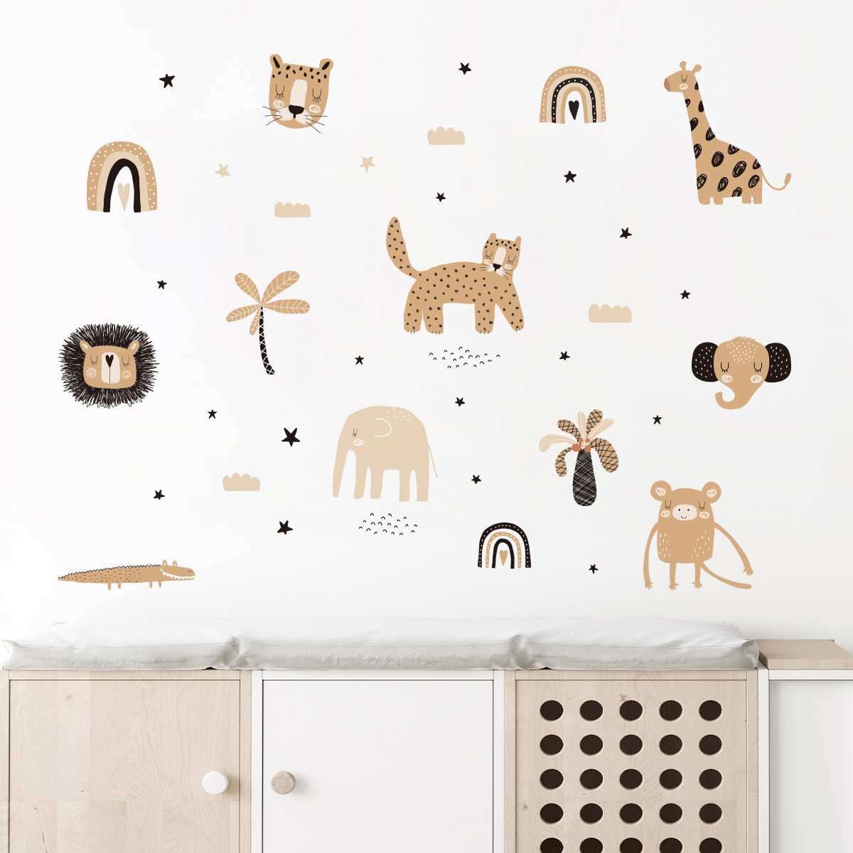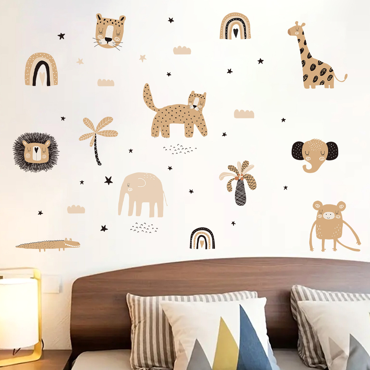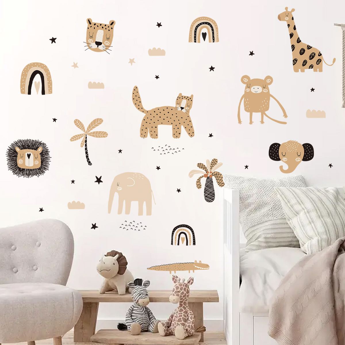 BR0043C 만화 귀여운 아프리카 대초원 작은 동물 자기 접착 벽 스티커 거실 어린이 방 장식 스티커스토어 가기