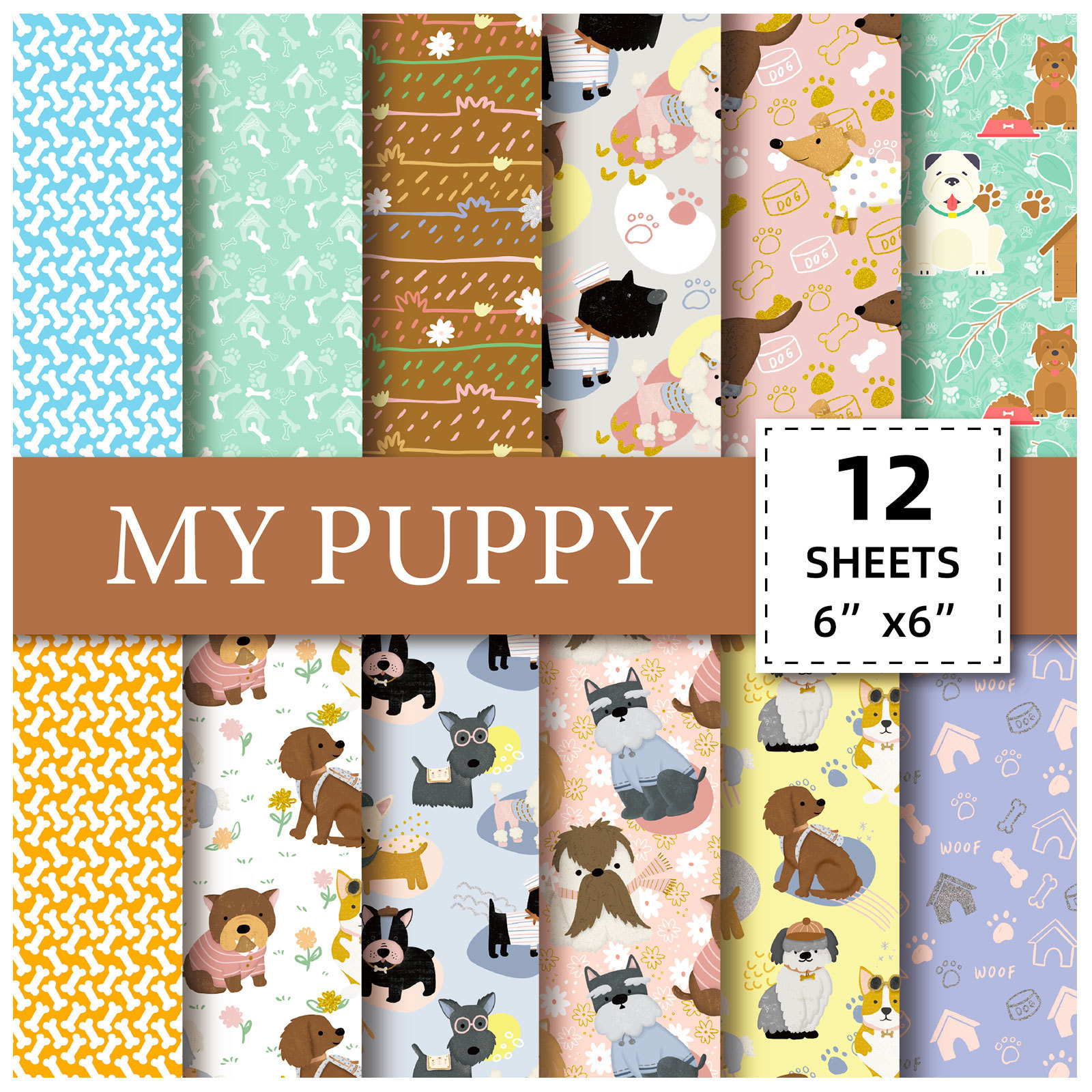 12 장/팩 DIY 사진 앨범 스크랩북 종이 검은 색과 회색 강아지 소재 종이 국경 아마존 도매 귀여운 소재 종이스토어 가기