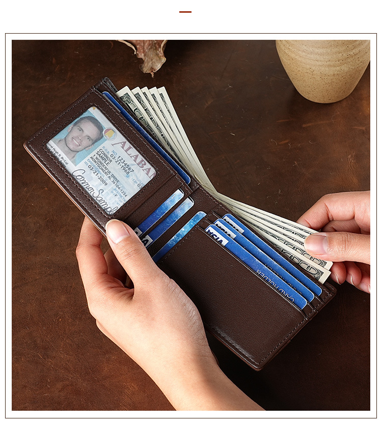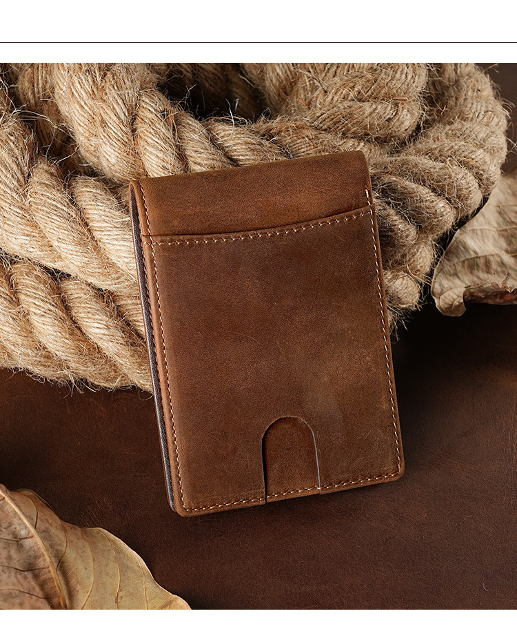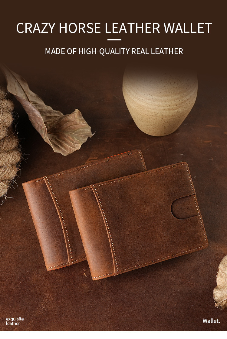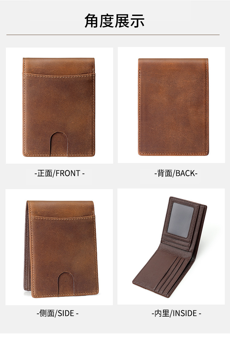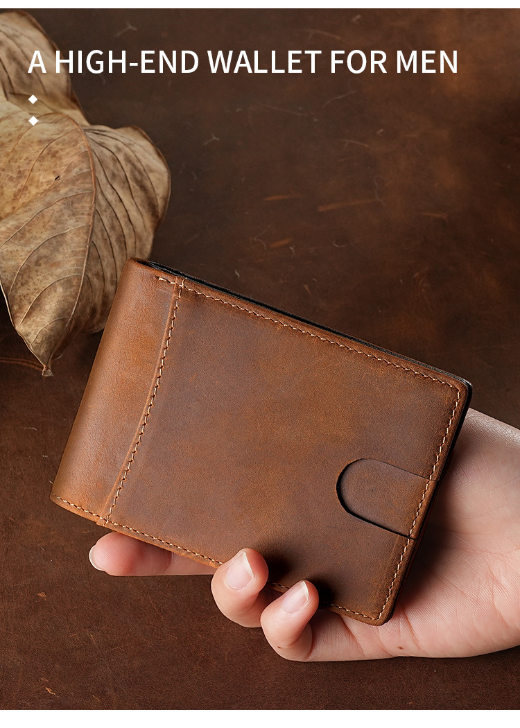 유럽과 미국의 복고풍 미친 말 가죽 지갑 남자의 짧은 지갑 RFID 도난 방지 브러시 첫 번째 레이어 소 가죽 지갑