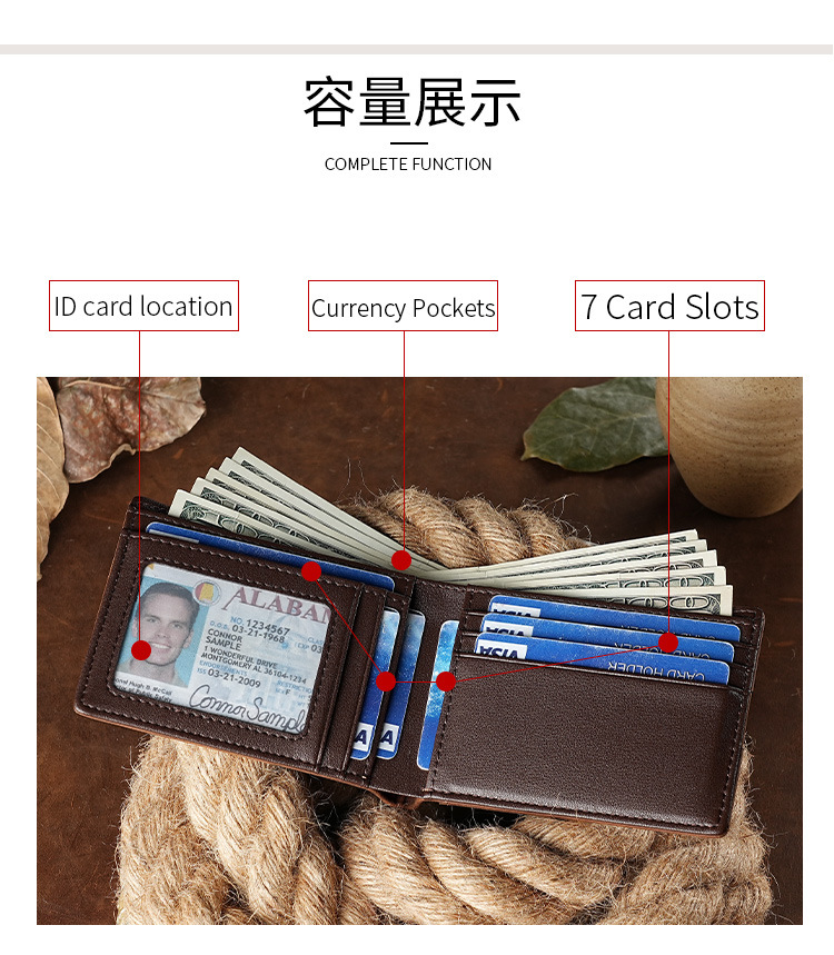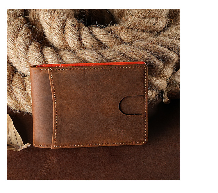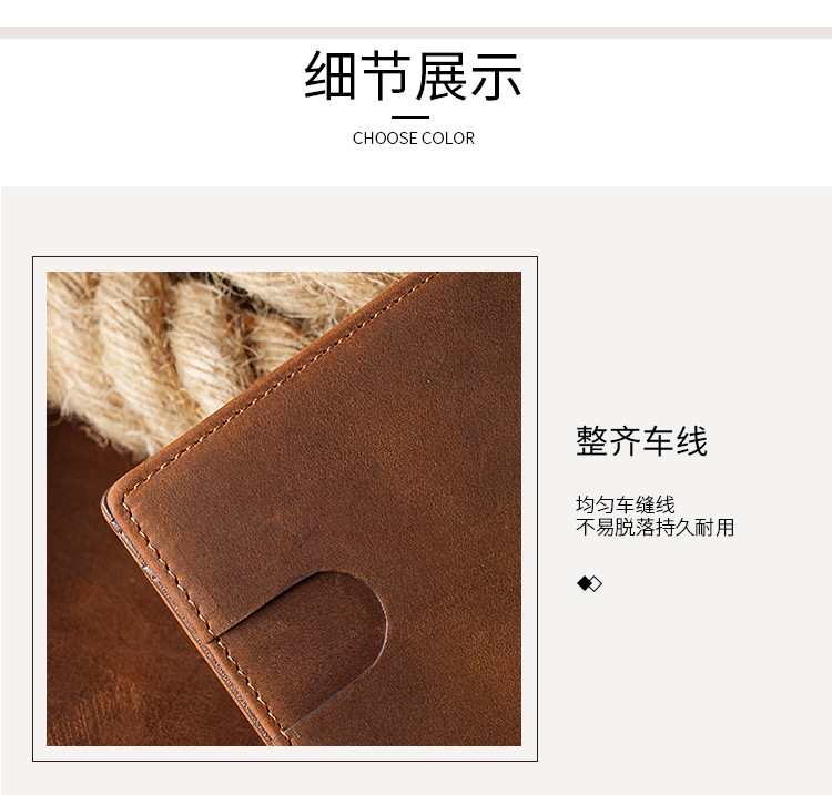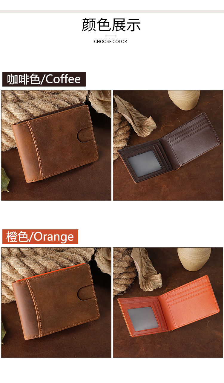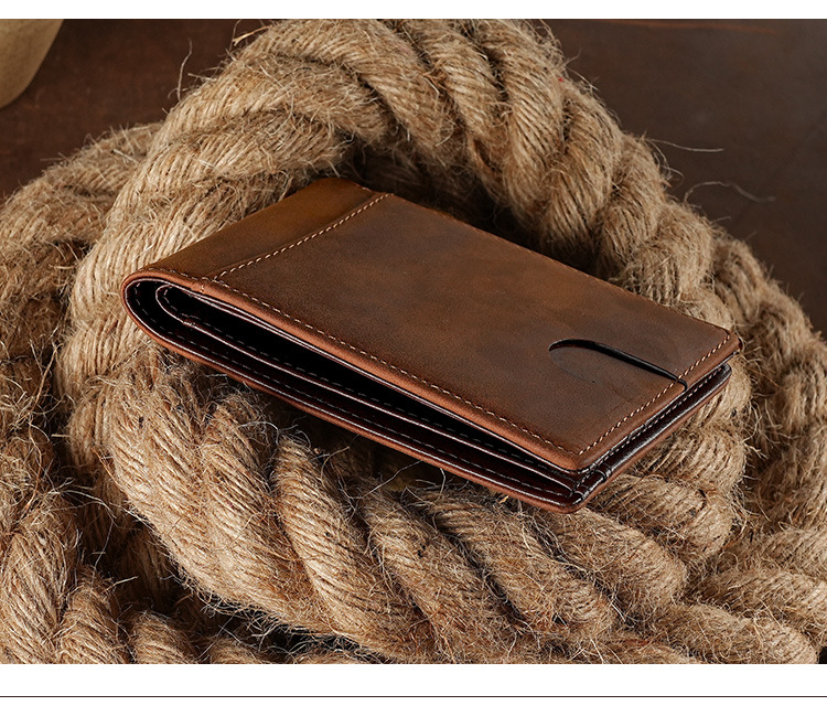 유럽과 미국의 복고풍 미친 말 가죽 지갑 남자의 짧은 지갑 RFID 도난 방지 브러시 첫 번째 레이어 소 가죽 지갑스토어 가기