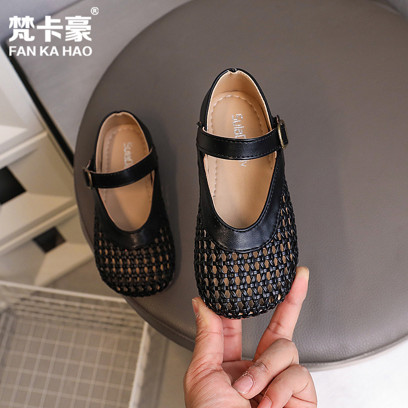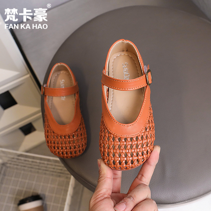 Fanca Hao 소녀 짠 작은 가죽 신발 2025 여름 새로운 한국 할머니 신발 어린이 중공 발가락 샌들스토어 가기