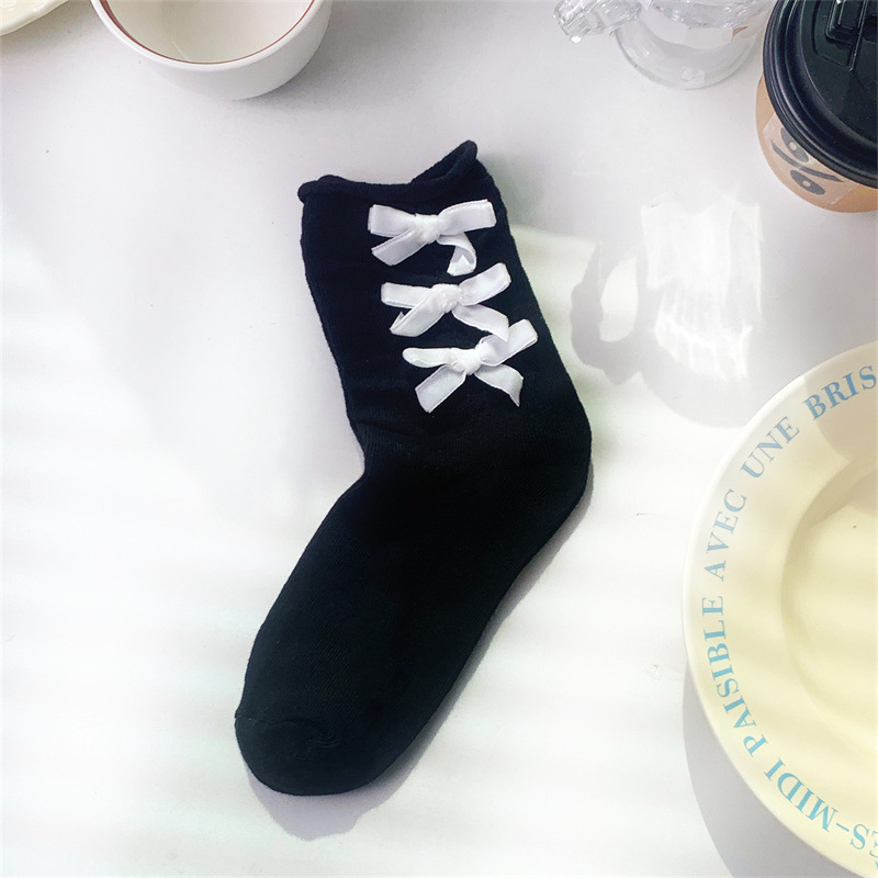 일본 로리타 부드러운 소녀 스타일 중간 송아지 통기성 양말 귀여운 활 더미 양말 달콤한 단색 jk 스타킹스토어 가기