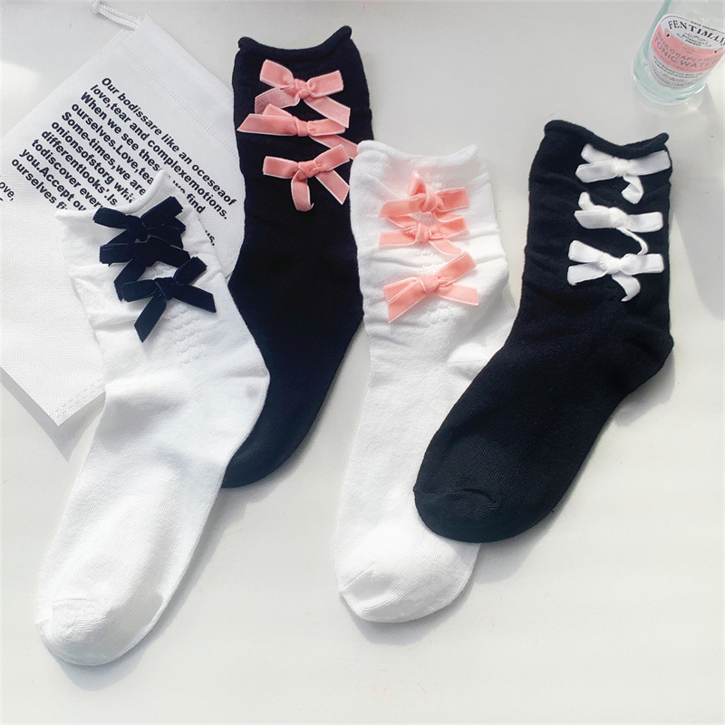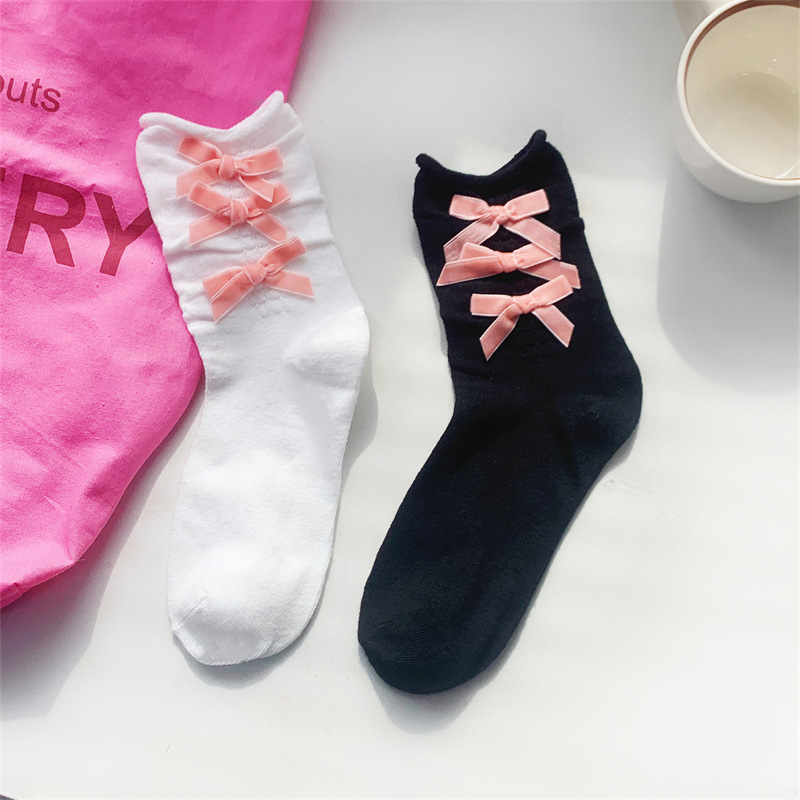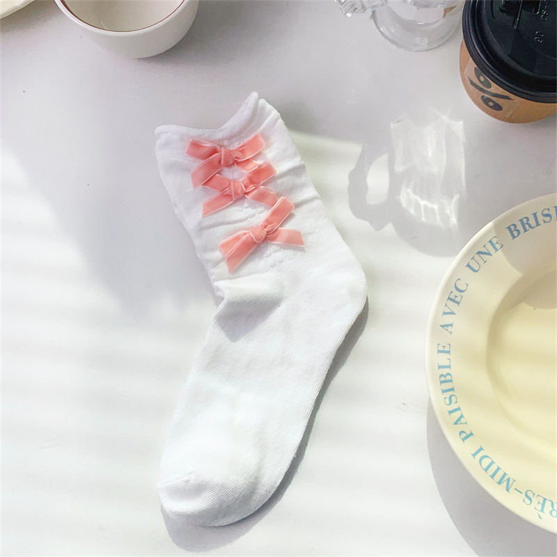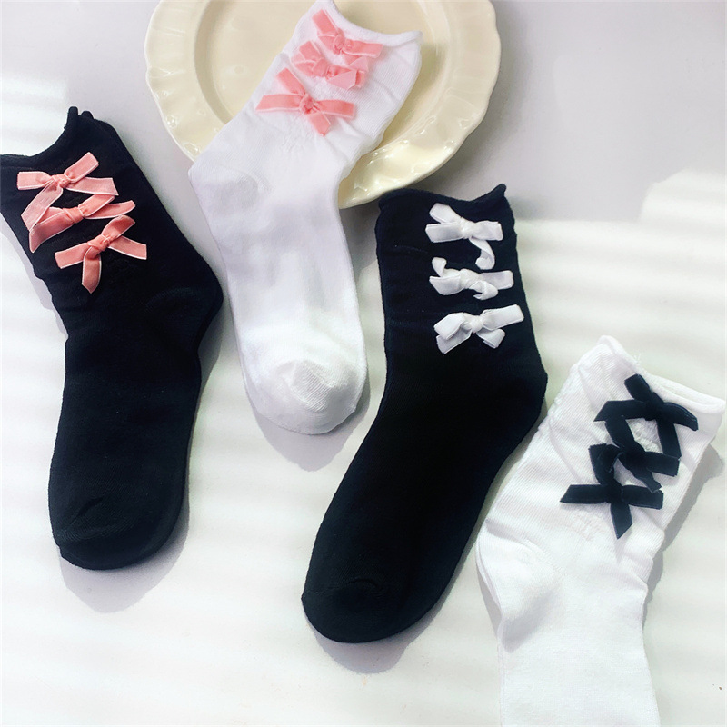 일본 로리타 부드러운 소녀 스타일 중간 송아지 통기성 양말 귀여운 활 더미 양말 달콤한 단색 jk 스타킹