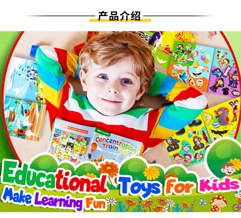 어린이 계몽 아기 조기 교육 스티커 책 아마존 국경 간 스티커 책 집중 잠재적 개발 스티커 10 부스토어 가기
