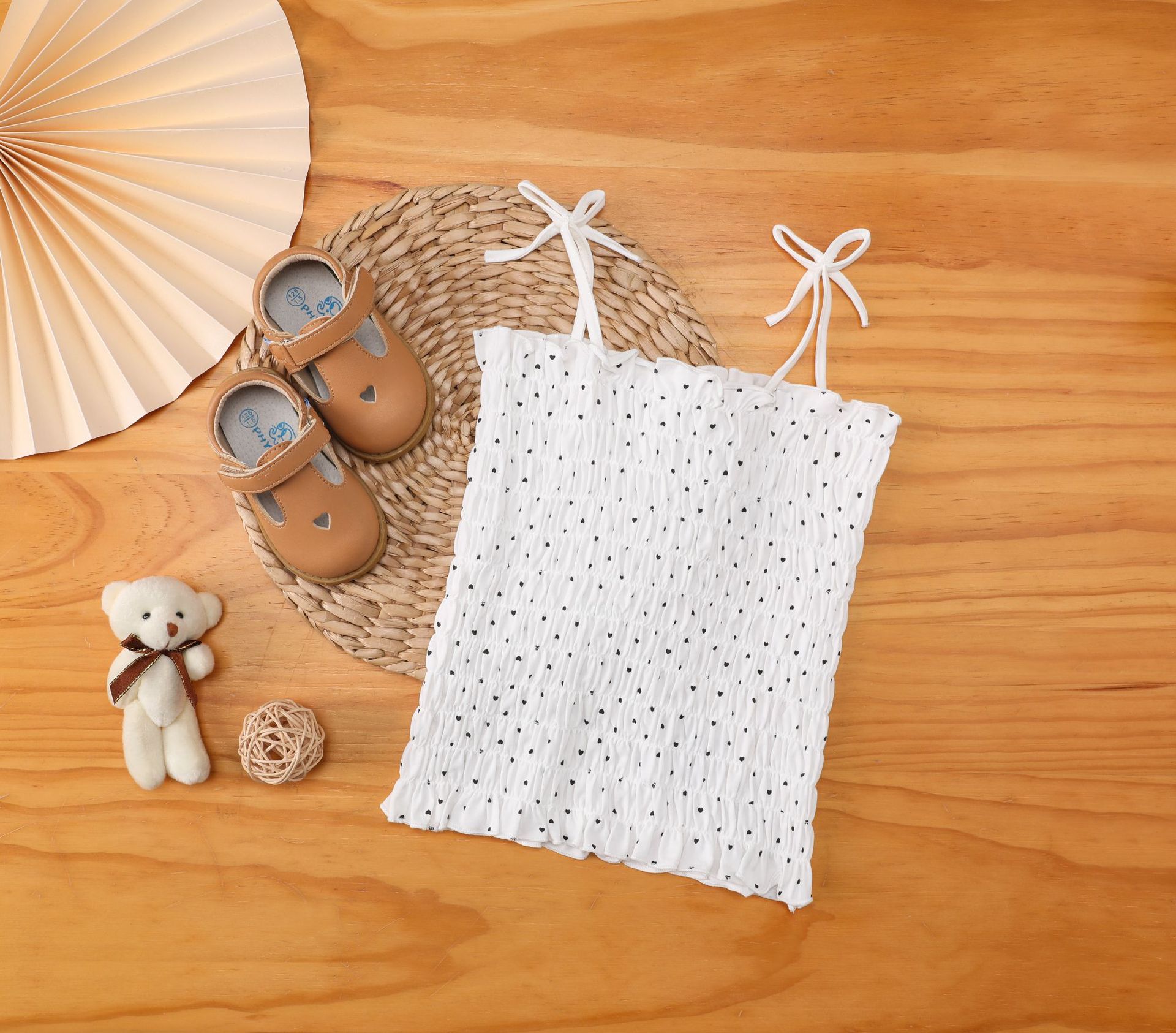 打揽背心女童吊带爱心吊带蝴蝶结上衣儿童白色上衣 凸凸裙女童上衣 凸凸裙吊带上衣