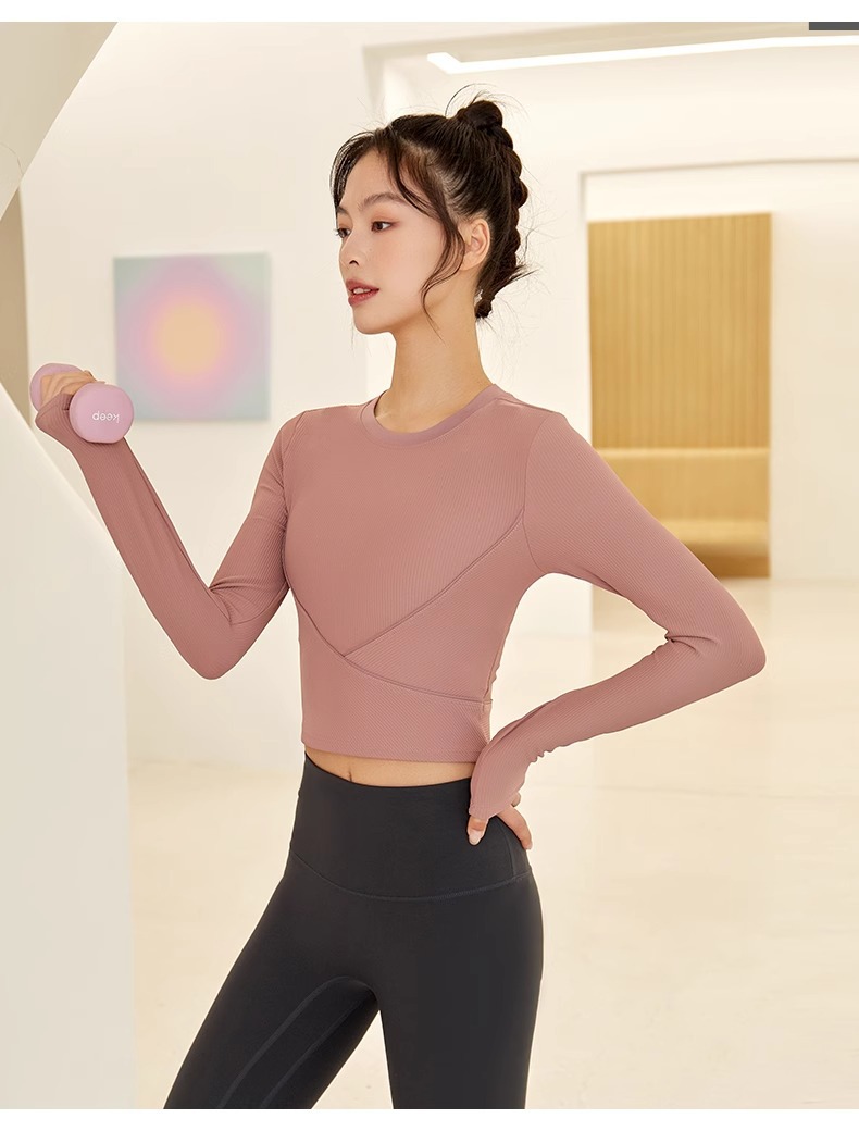 전문 훈련 필라테스 요가 옷 여성 봄과 가을 고급 서양식 달리기 빠른 건조 티셔츠 스포츠 탑