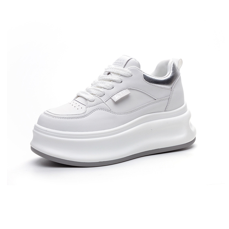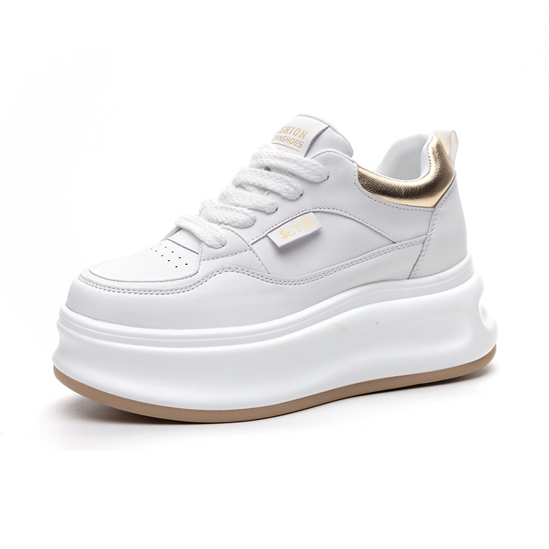 흰색 신발 2025 봄 새로운 스타일 가죽 내부 높이 증가 캐주얼 두꺼운 밑창 학생 신발 웨지 힐 편안하고 세련된 여성 신발