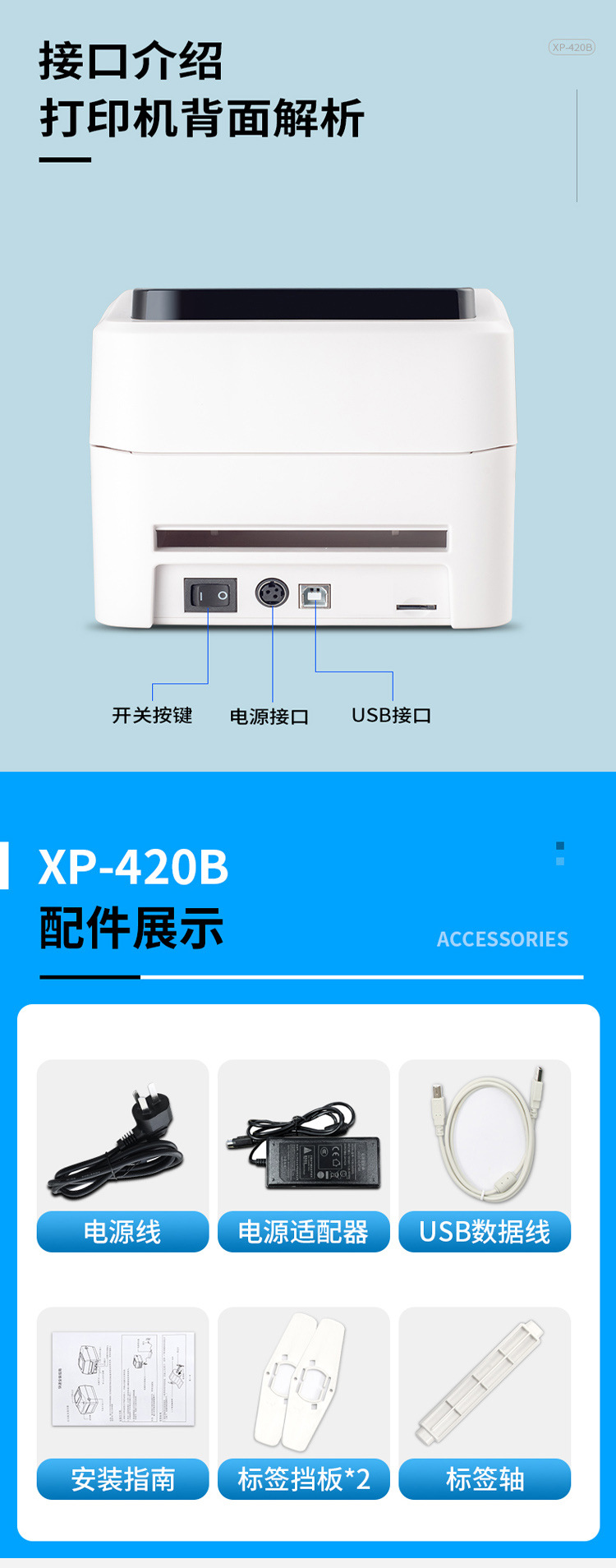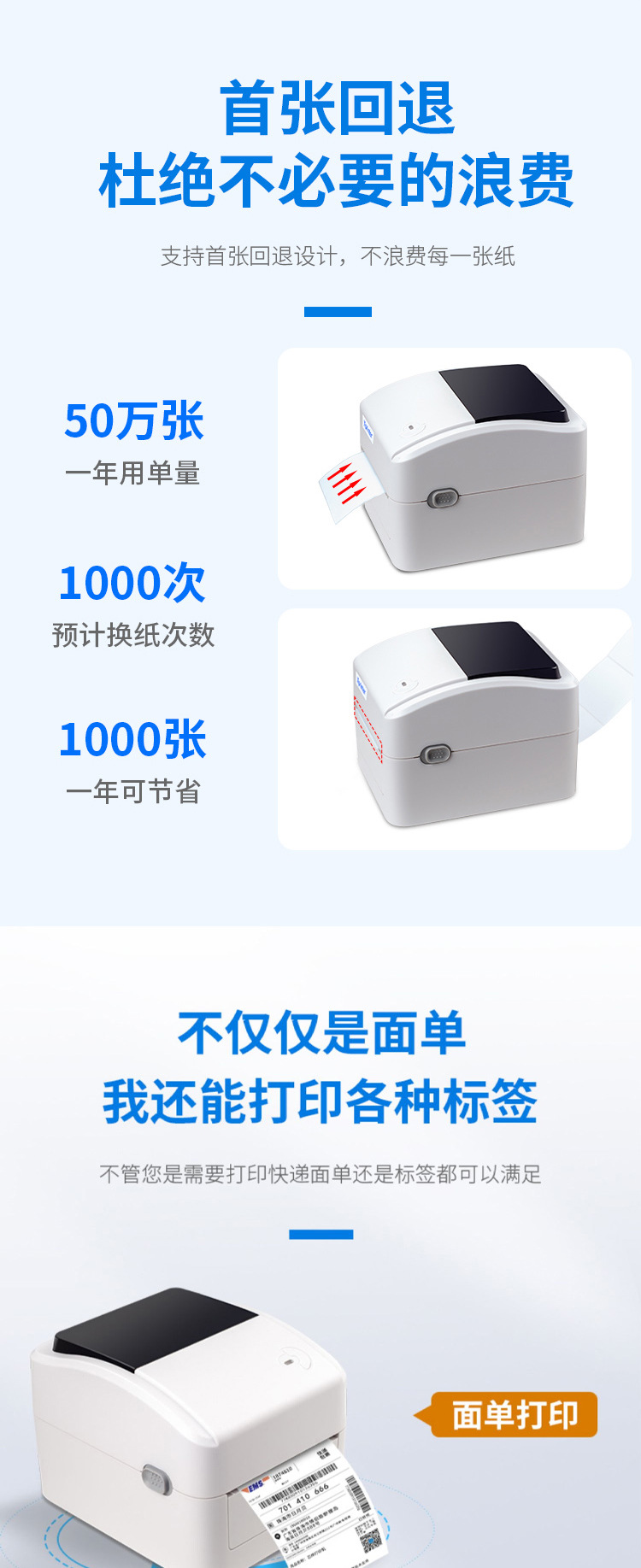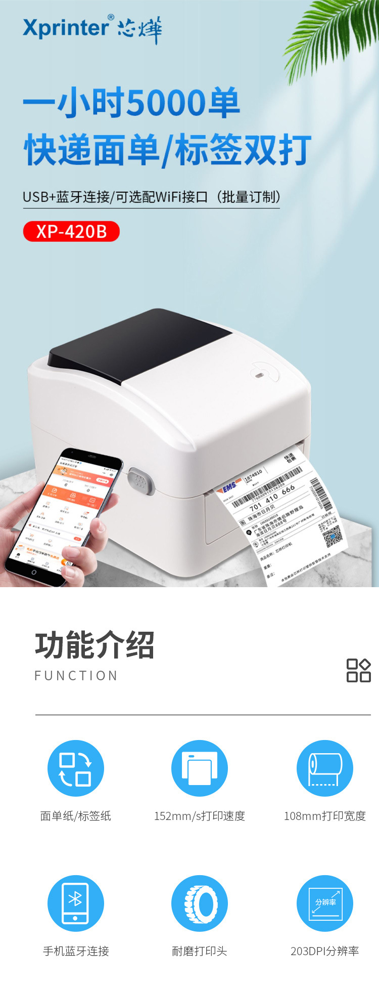 Xinye XP-420B/470E 아마존 국경 전자 상거래 라벨 바코드 표면 단일 종이 접착 열 프린터