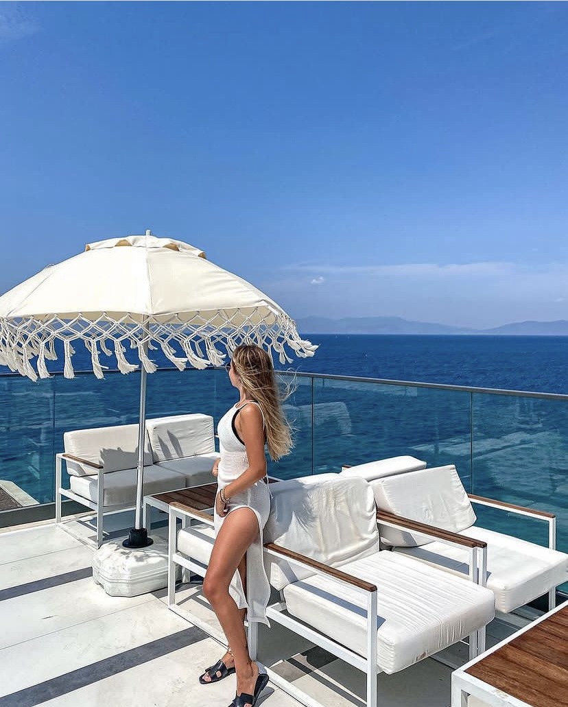 2025년 신작 크로스보더 핫스타일 양쪽 하이 슬릿 서스펜더 아름다운 등 니트 드레스 비치 리조트 스타일스토어 가기