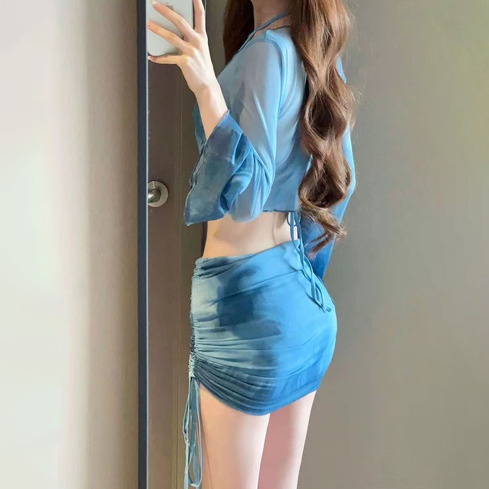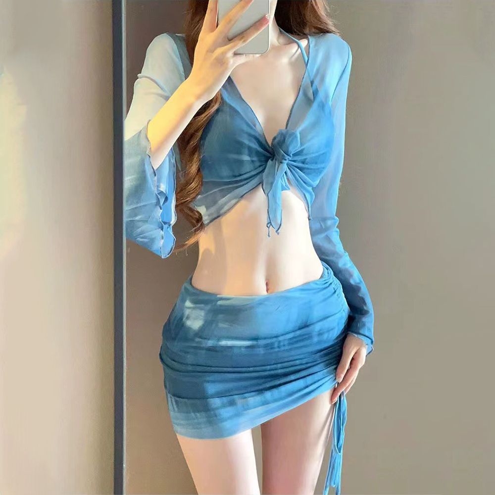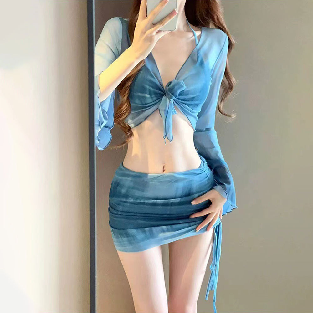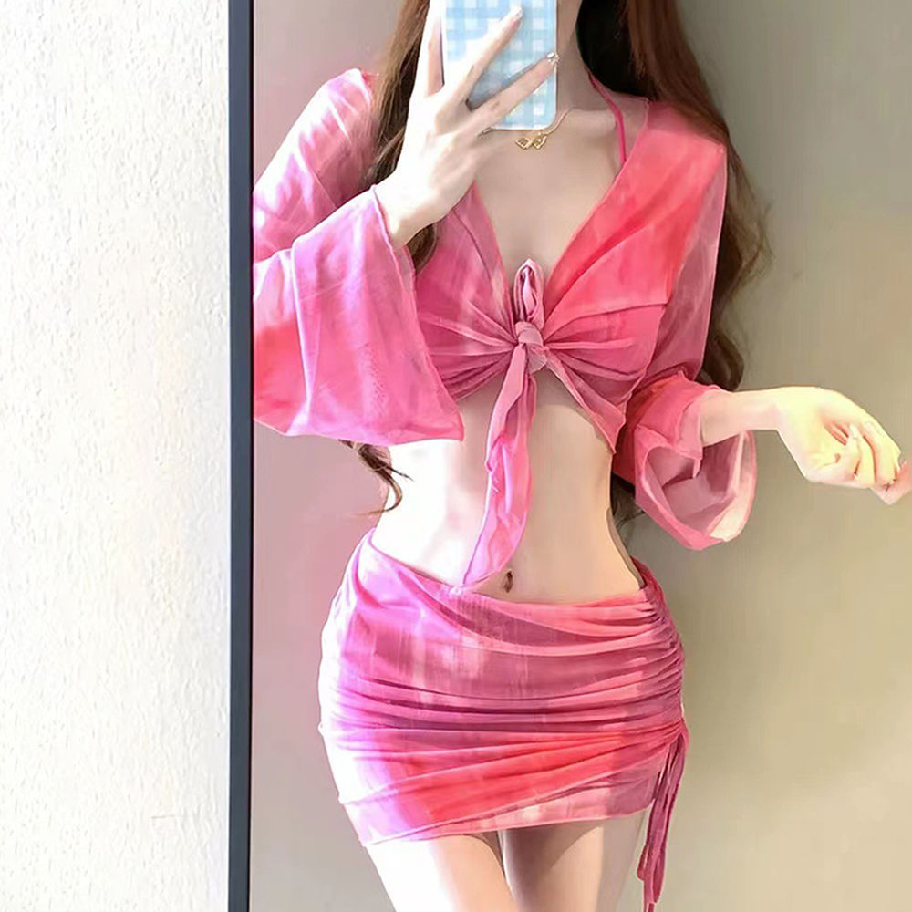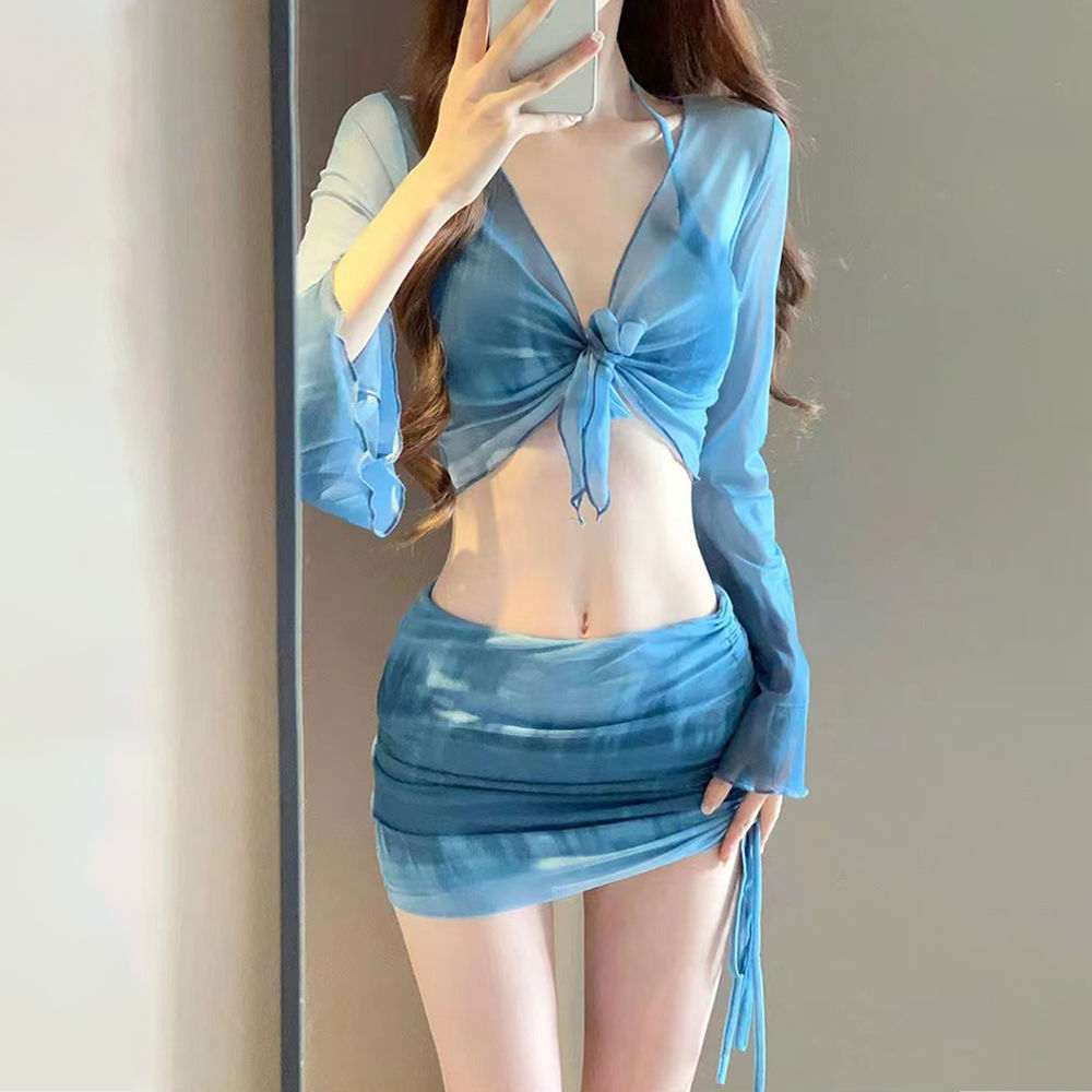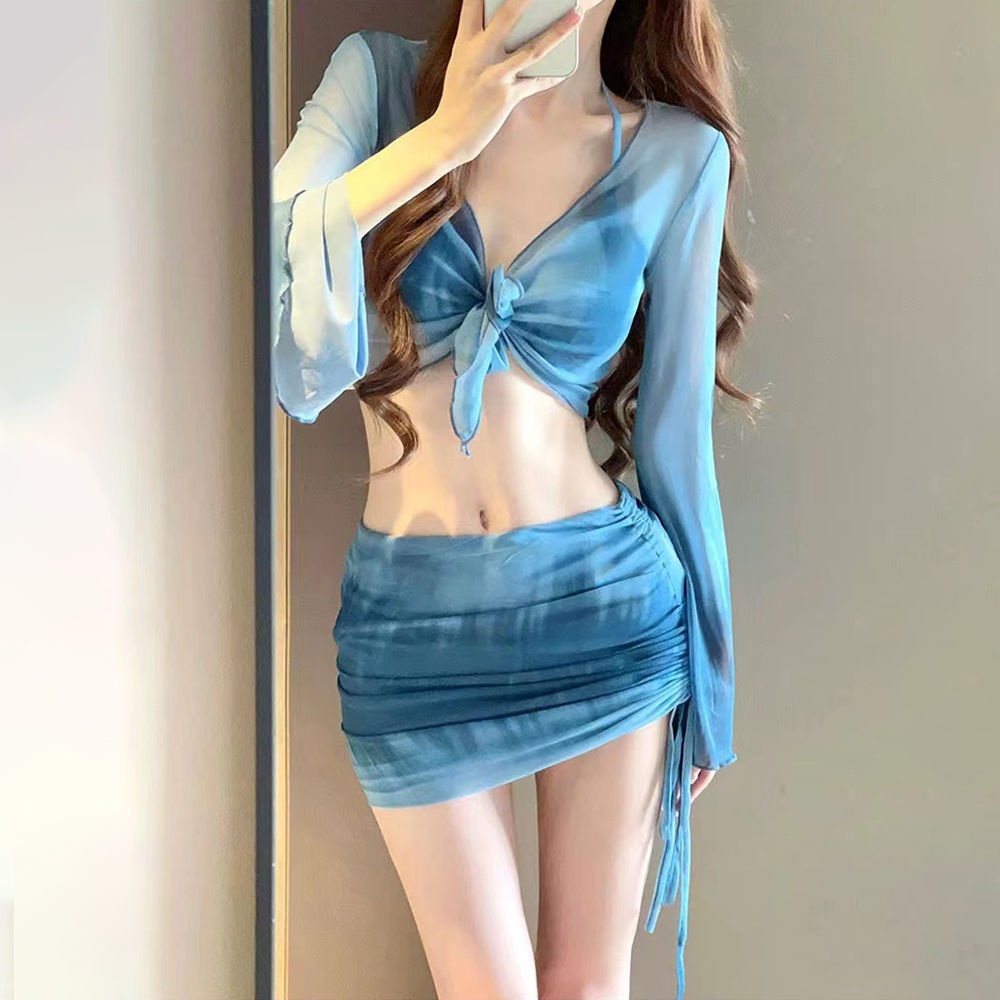 새로운 비키니 4 피스 세트 핫걸 프린트 투피스 수영복 여성용 작은 가슴 긴 소매 섹시한 해변 휴가 수영복