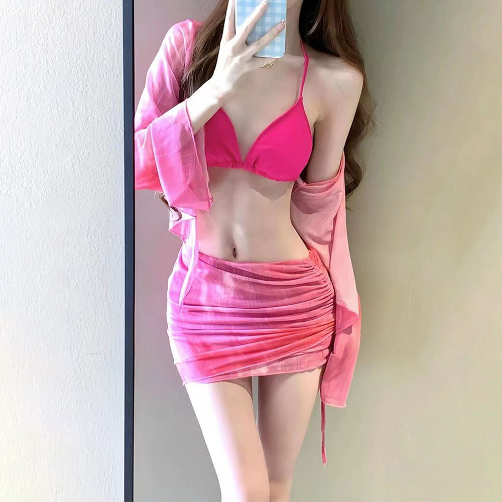 새로운 비키니 4 피스 세트 핫걸 프린트 투피스 수영복 여성용 작은 가슴 긴 소매 섹시한 해변 휴가 수영복스토어 가기