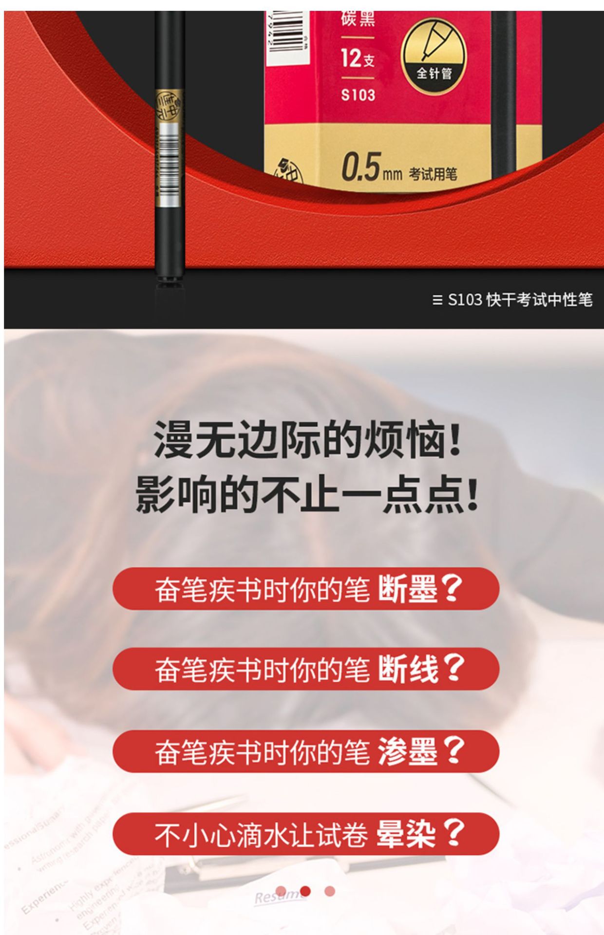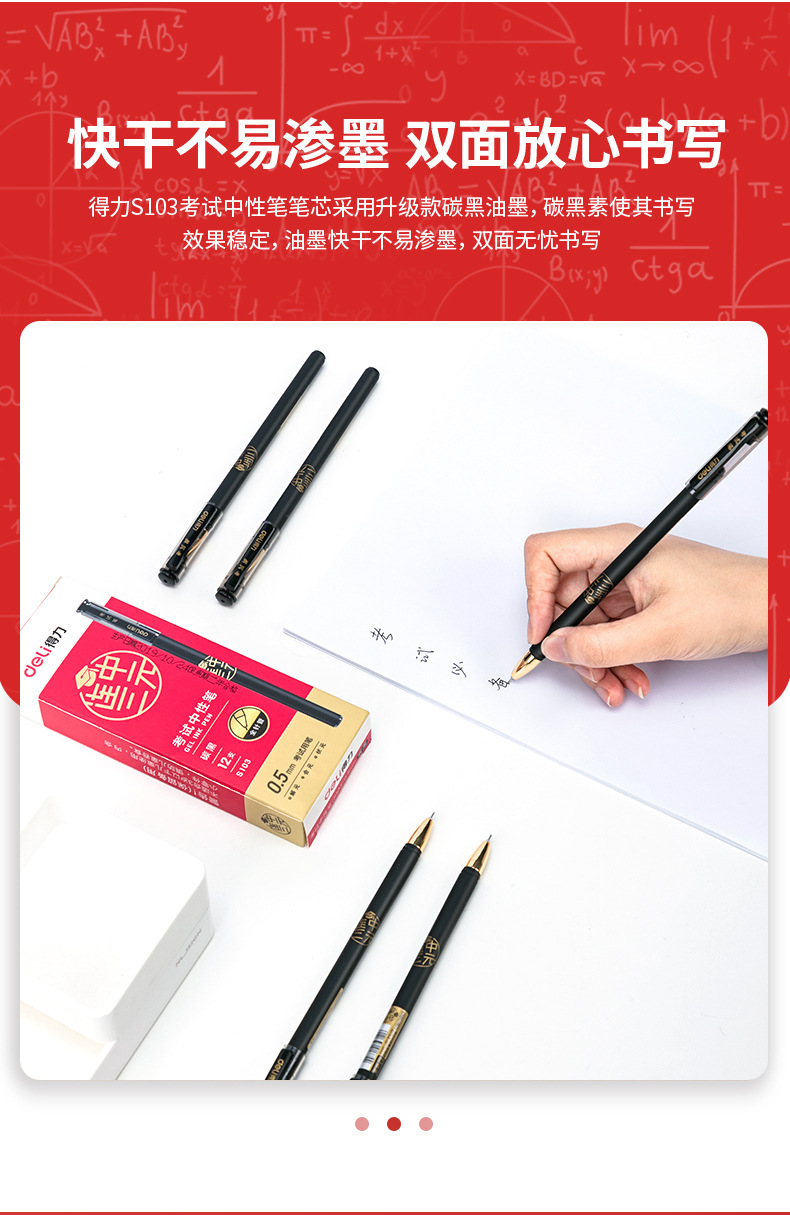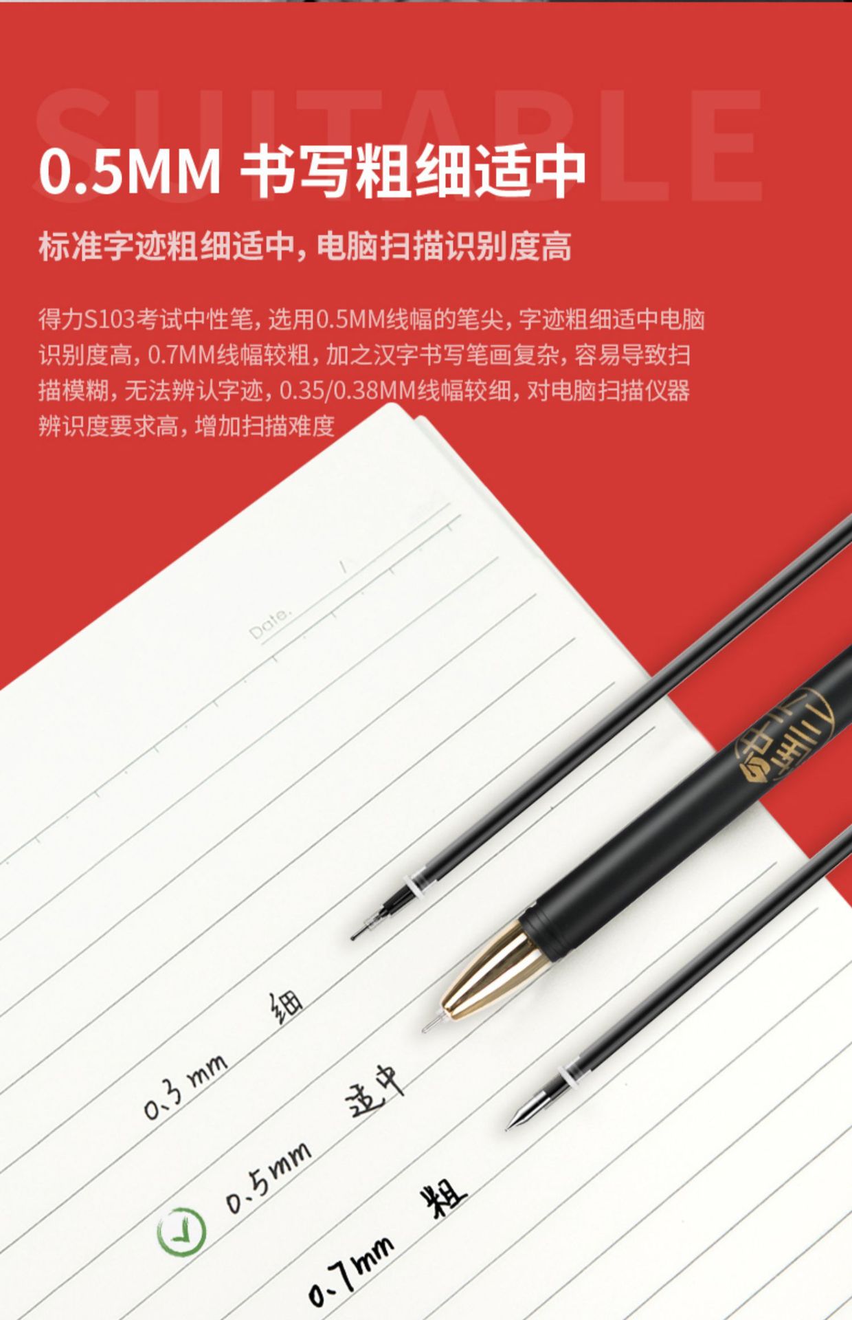 Deli S103 테스트 젤 펜 0.5mm 풀 바늘 튜브 연속 고등학교 입학 시험 학생