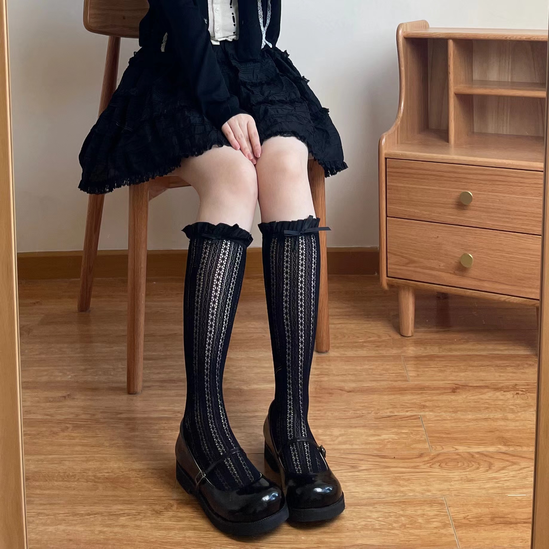 레이스 활 곰팡이 레이스 그물 붉은 태양 양말 jk 중공 여름 얇은 메리 제인 레이스 더미 양말