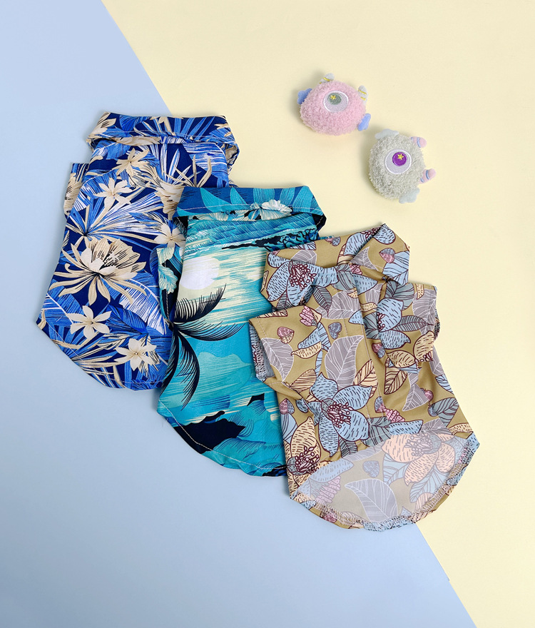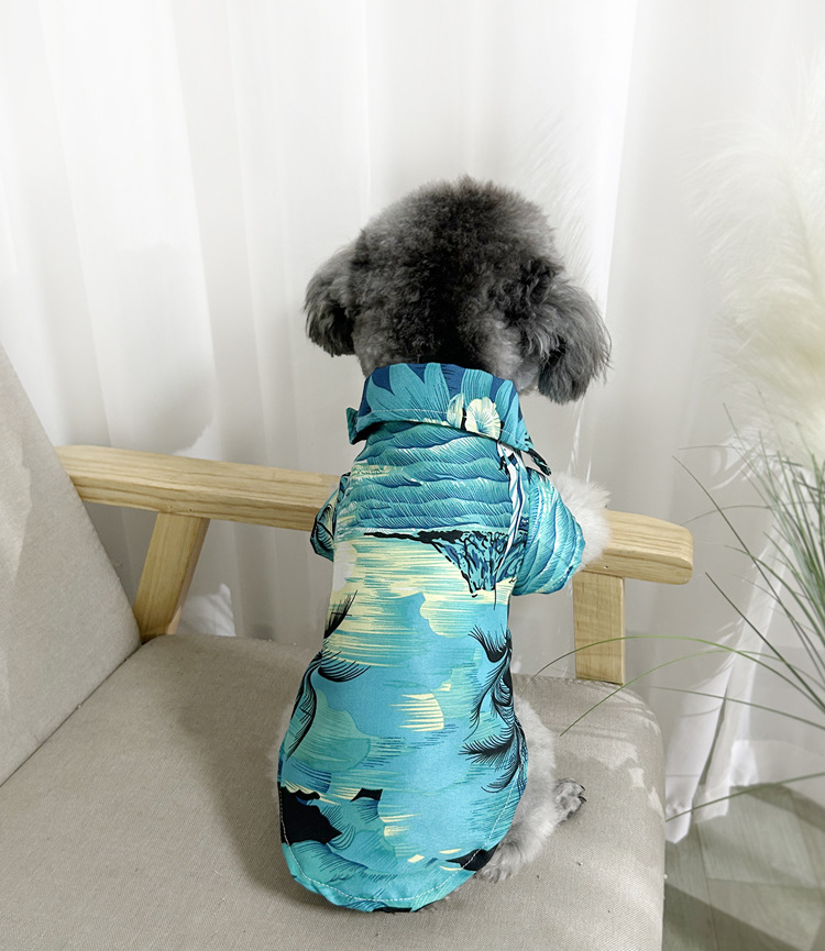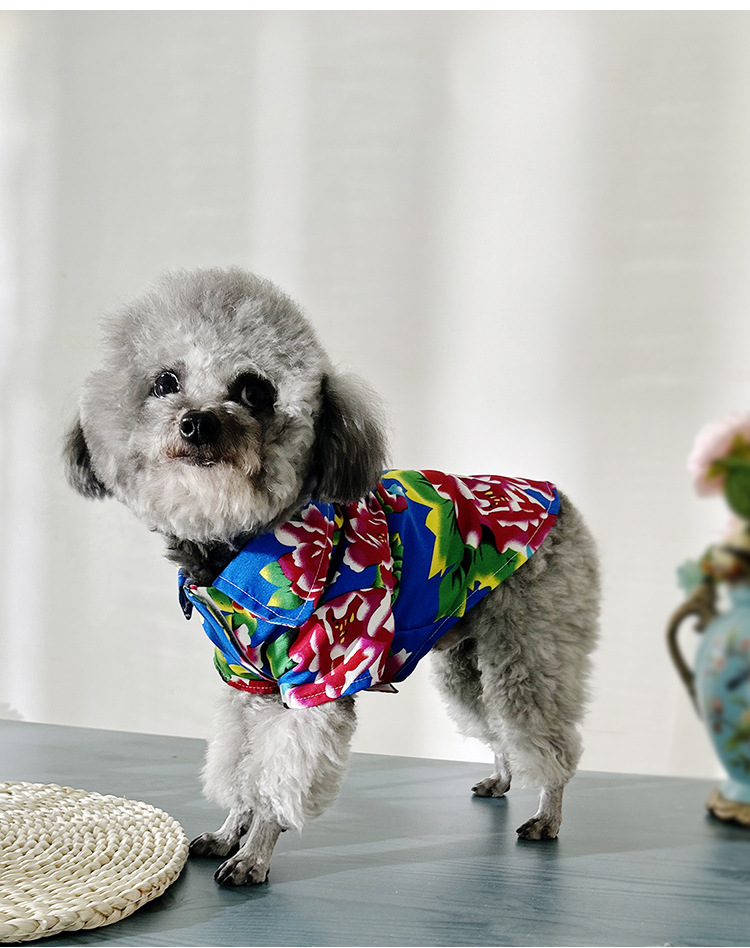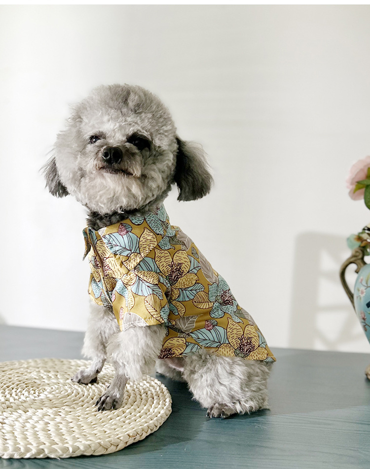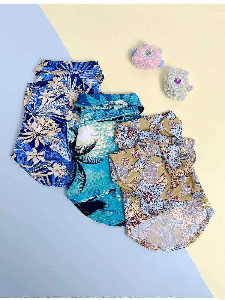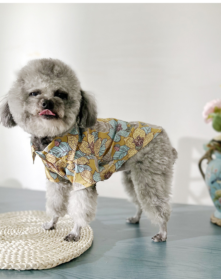 개 옷 여름 얇은 애완 동물 하와이 옷깃 셔츠 테디 베어 보메이 작은 개 고양이 의류스토어 가기