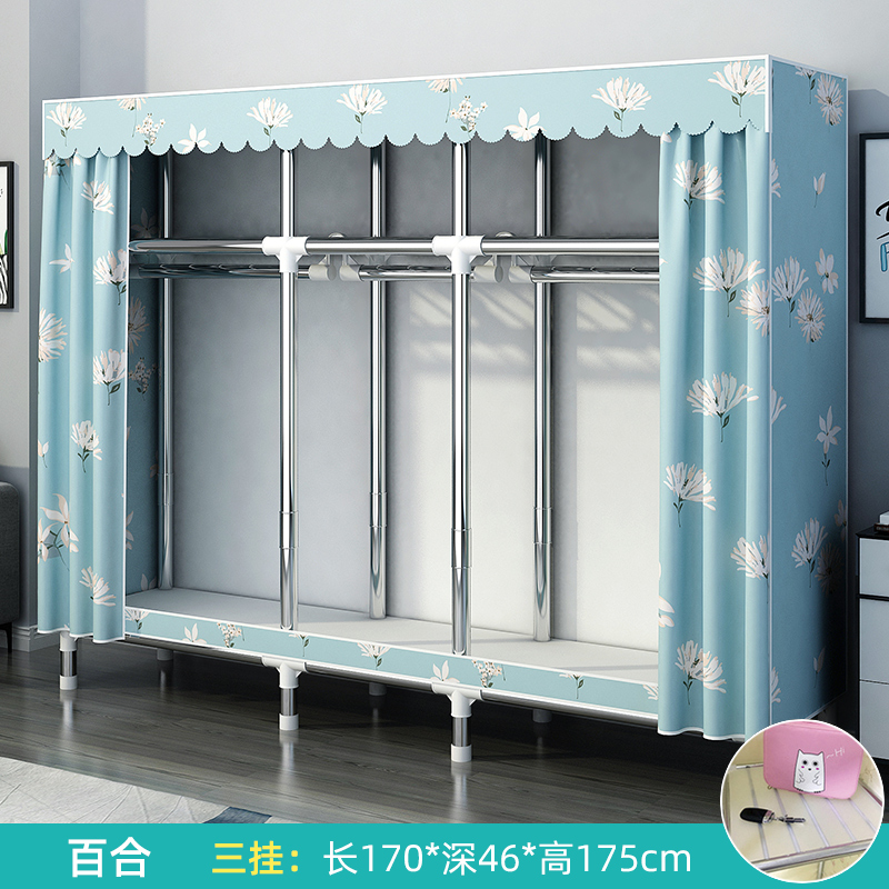 간단한 옷장 집 침실 조립 천 옷장 강철 파이프 두꺼운 강화 강하고 튼튼한 천 옷장 임대 Beiqin