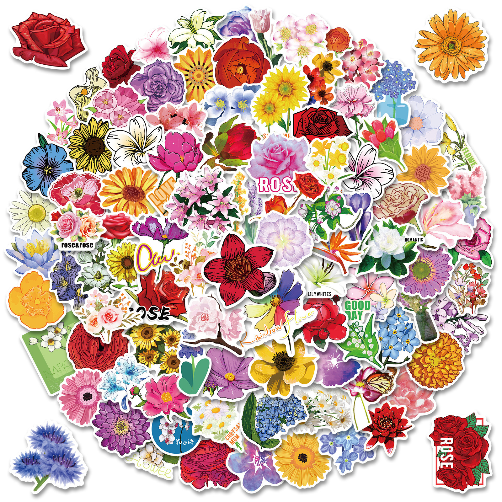100 아름다운 꽃 꽃 소녀 심장 손 계정 스티커 컵 휴대 전화 어린이 보상 스티커 도매