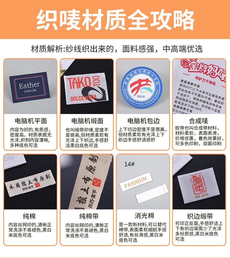 의류 칼라 라벨 재고 국경 아동복 여성 의류 천 라벨 직조 마크 인쇄 마크 커튼 소파 사이드 라벨 사용자 정의